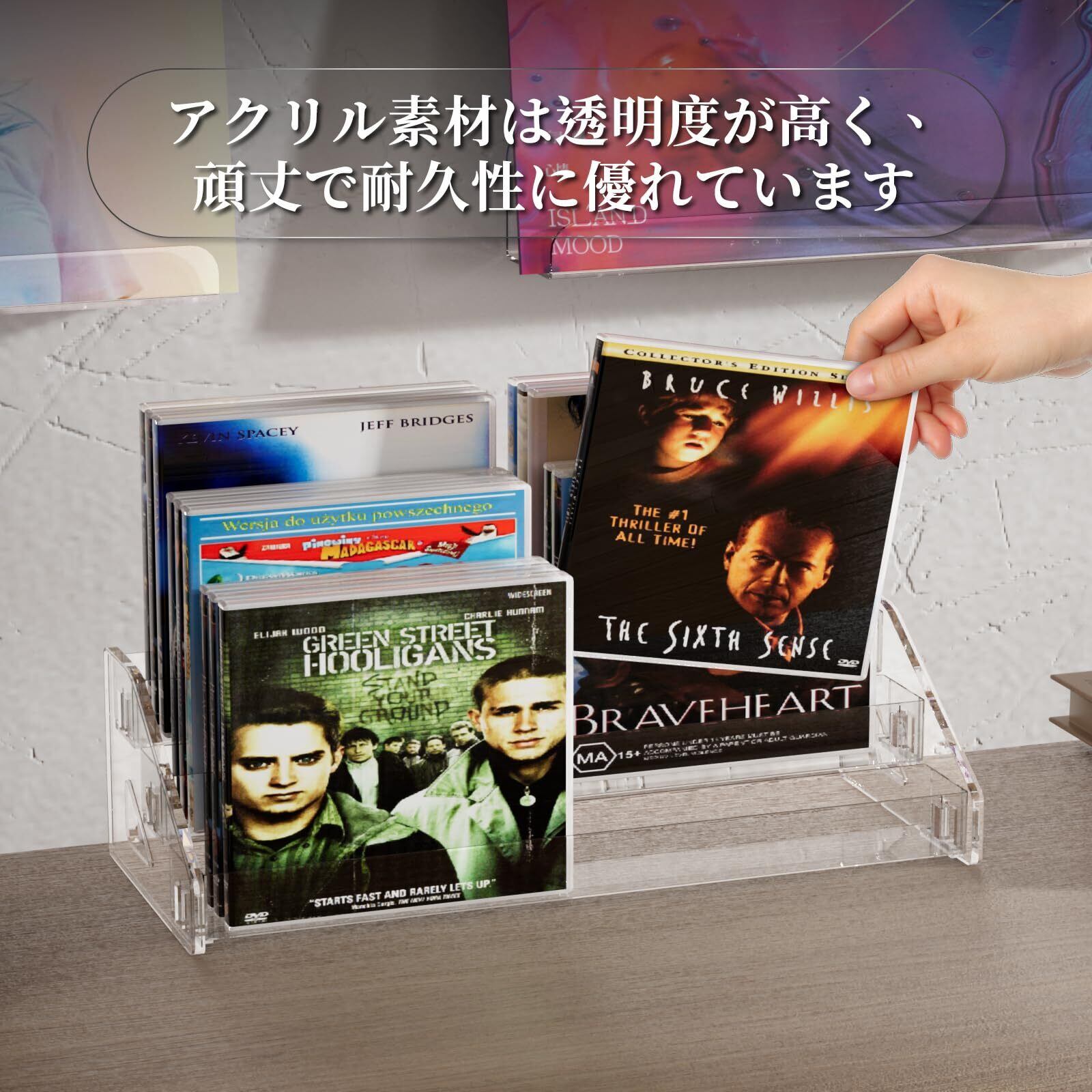 精緻なCD収納棚:階段式設計、厚い亜克力材料を採用して、更に堅牢で安定します。オープンデザインなのでCDの取り出しも簡単です。