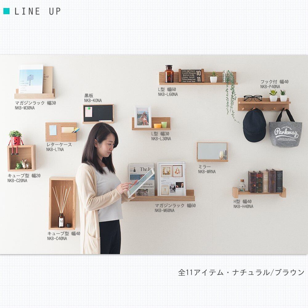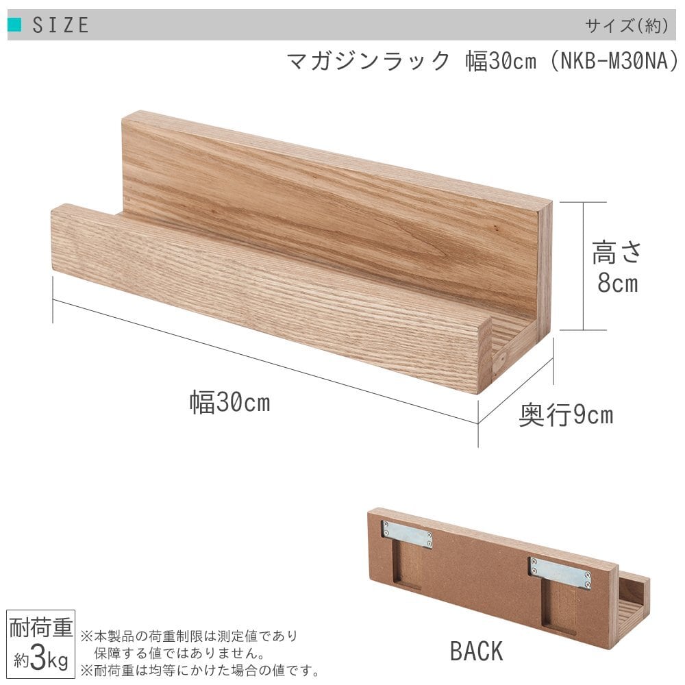 ドウシシャ ピンで取り付けるマガジンラック ウォールシェルフ 幅30 壁を傷つけない 天然木製 壁掛け 飾り棚 耐荷重3kg おしゃれ 石膏ボード 簡単取付 本棚 洗面所 子供部屋 調味料 幅30×奥行9×高さ8cm NKB-M30NA 賃貸 DIY