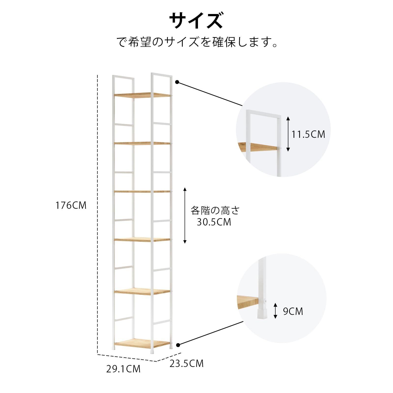 ANDWINT オープンシェルフ ラック スリム 6段 幅30 ホワイト 収納 棚 すき間 飾り棚 コーナーラック 組立簡単 本棚 ディスプレイ 陳列 展示 スチールシェルフ フリーラック シンプル モダン 花台