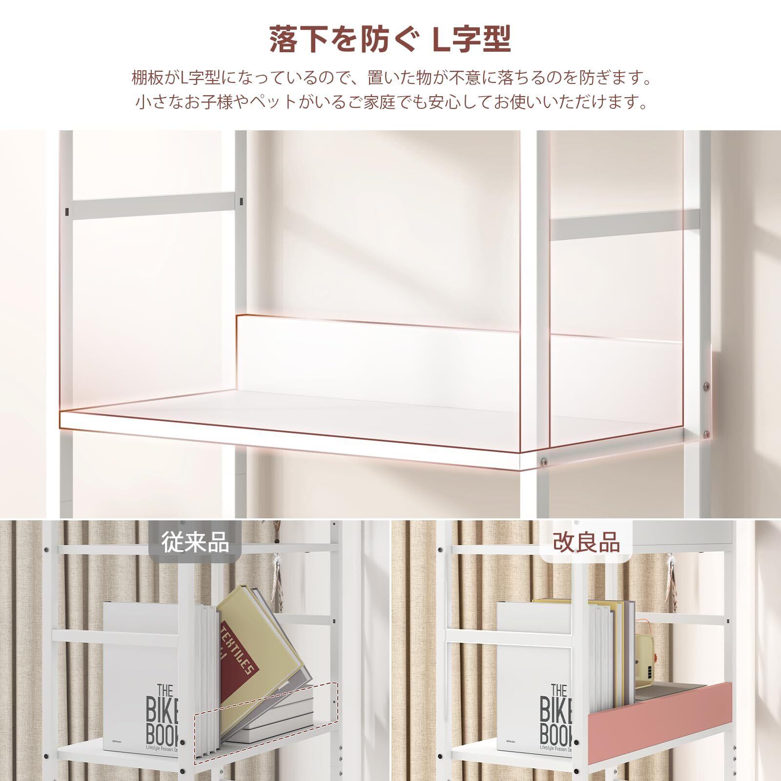 【安全構造】日本JIS基準デザインに基づいた頑丈な構造、天板と棚板はネジ止めにより確実に固定されており、長期間にわたって緩みを防止しています。スチールフレームは他社製品と違って、すべての部分に横パイプサポートを採用しています。