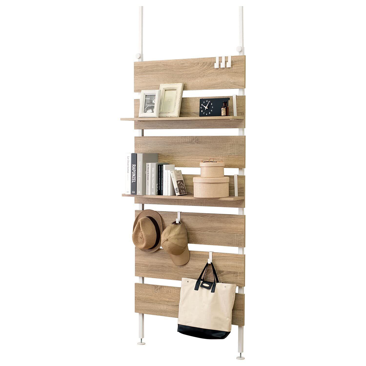 萩原(Hagihara) 突っ張り ラック つっぱり 棚 壁面収納 ウォールラック 【DIY・穴あけ・工事が不要】簡単取付 段差対応 木目調 幅80 スリム ナチュラル KTR-3148NW