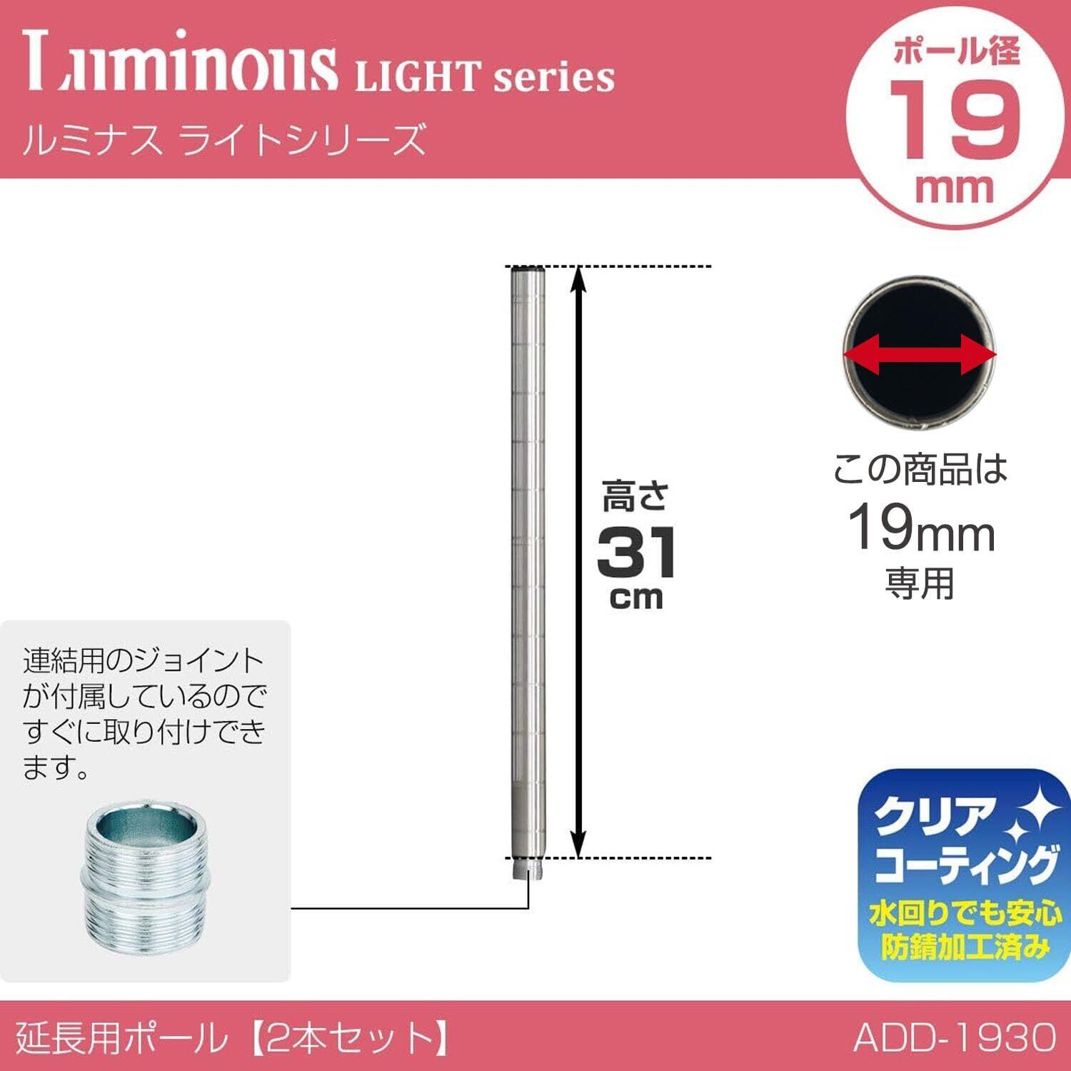 ドウシシャ ルミナス スチールラックパーツ 高さ延長ポール 支柱 2本セット ジョイント付き 高さ31cm ADD-1930 ポール径19mm 収納力アップ 追加パーツ diy 後付け 業務用 頑丈 防サビ加工 スリム 細身 取付簡単 高さ継ぎ足し