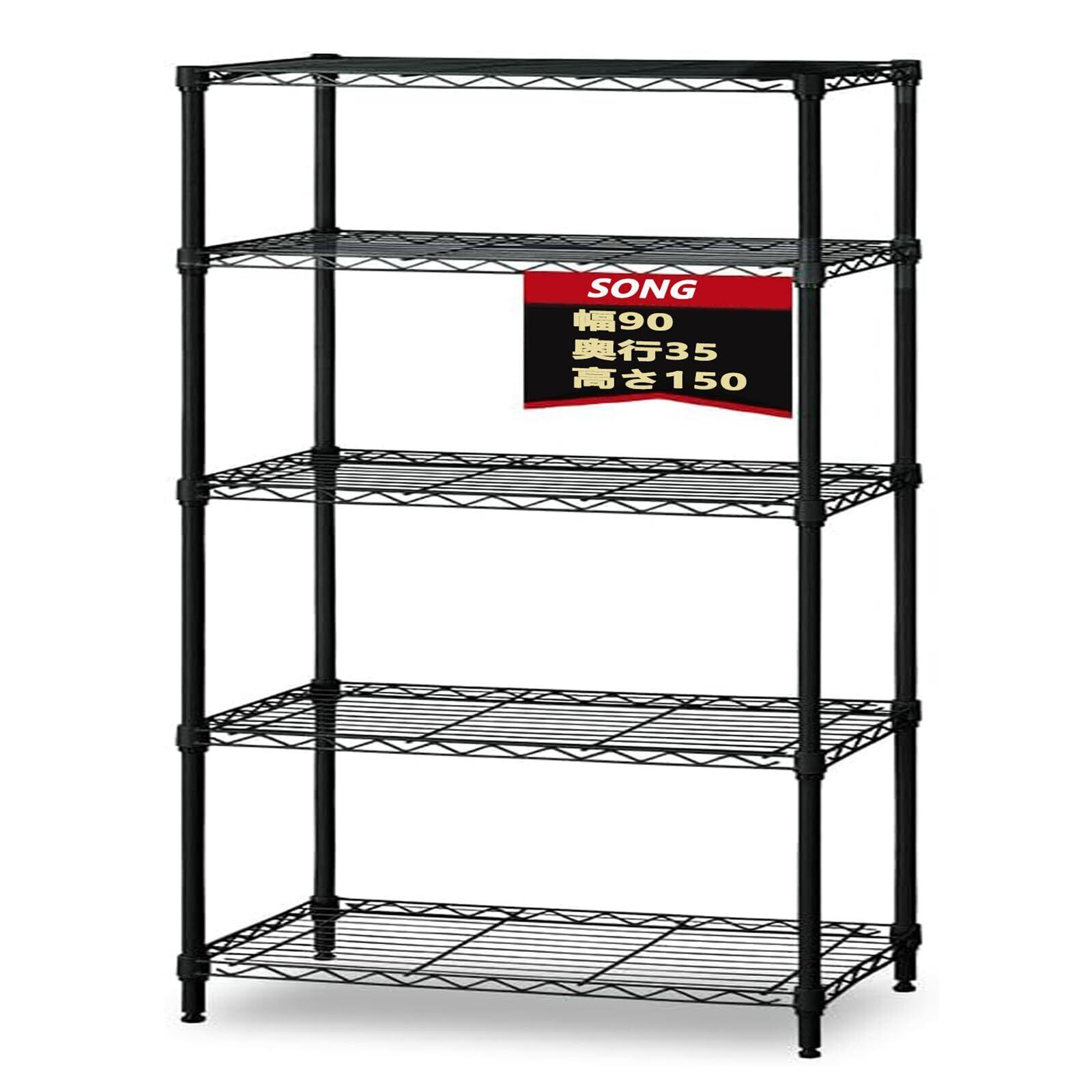 SONG 5段スチールラック 幅90×奥行35cm 高さ150/120/90cm選べる メタルラック シェルフ 収納棚 キッチンラック 収納ラック 高さ調整可能 キャスター付き 日本語説明書 (黒 5段-幅90×奥行35×高さ150cm)