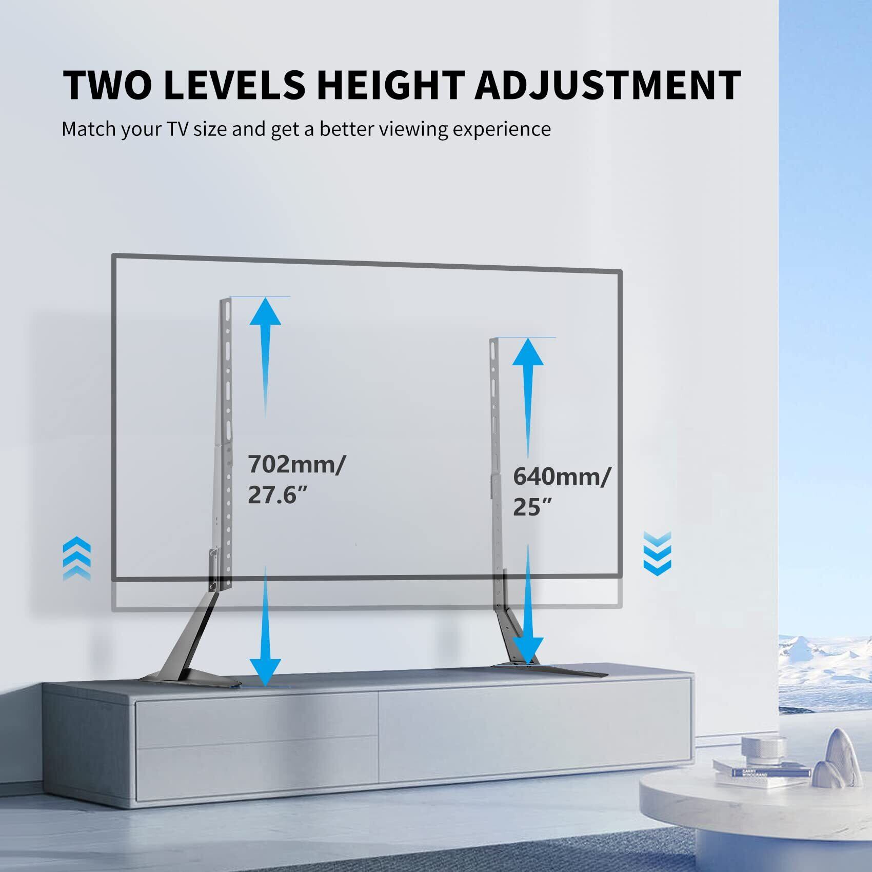 【テレビスタンドの安定性】:高品質の冷間圧延鋼がコア材料で、最大耐荷重は40kgです。頑丈で耐久性のあるモニタースタンドを提供します。ゴム製の滑り止めの足が傷から保護します。