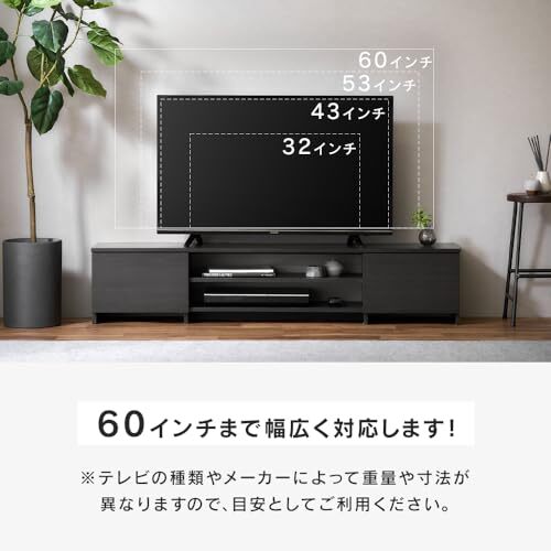 大型テレビを置いても安定感があり、お部屋にも馴染みます。最大60インチのテレビに対応。※設置するテレビの脚サイズをご確認の上ご使用ください。