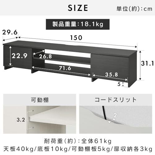 【60インチまで対応】アイリスオーヤマ テレビ台 『隠せる収納』 AVボード ローボード 収納 棚 ボックスタイプ 幅約150×奥行約29.6×高さ約31.1cm BAB-150R ブラックオーク