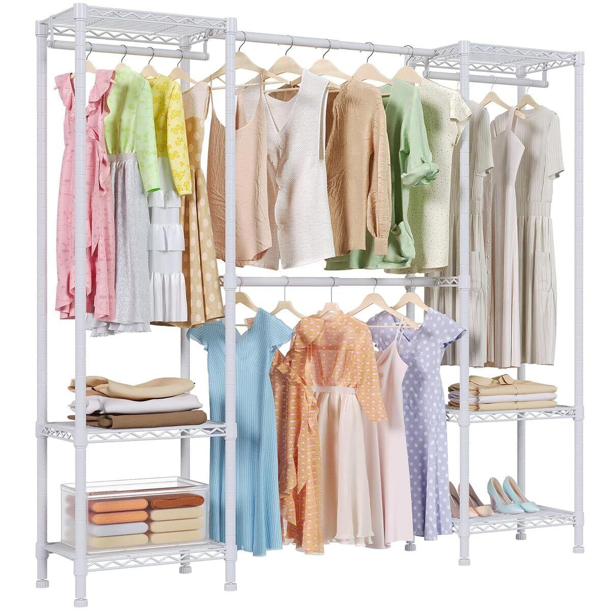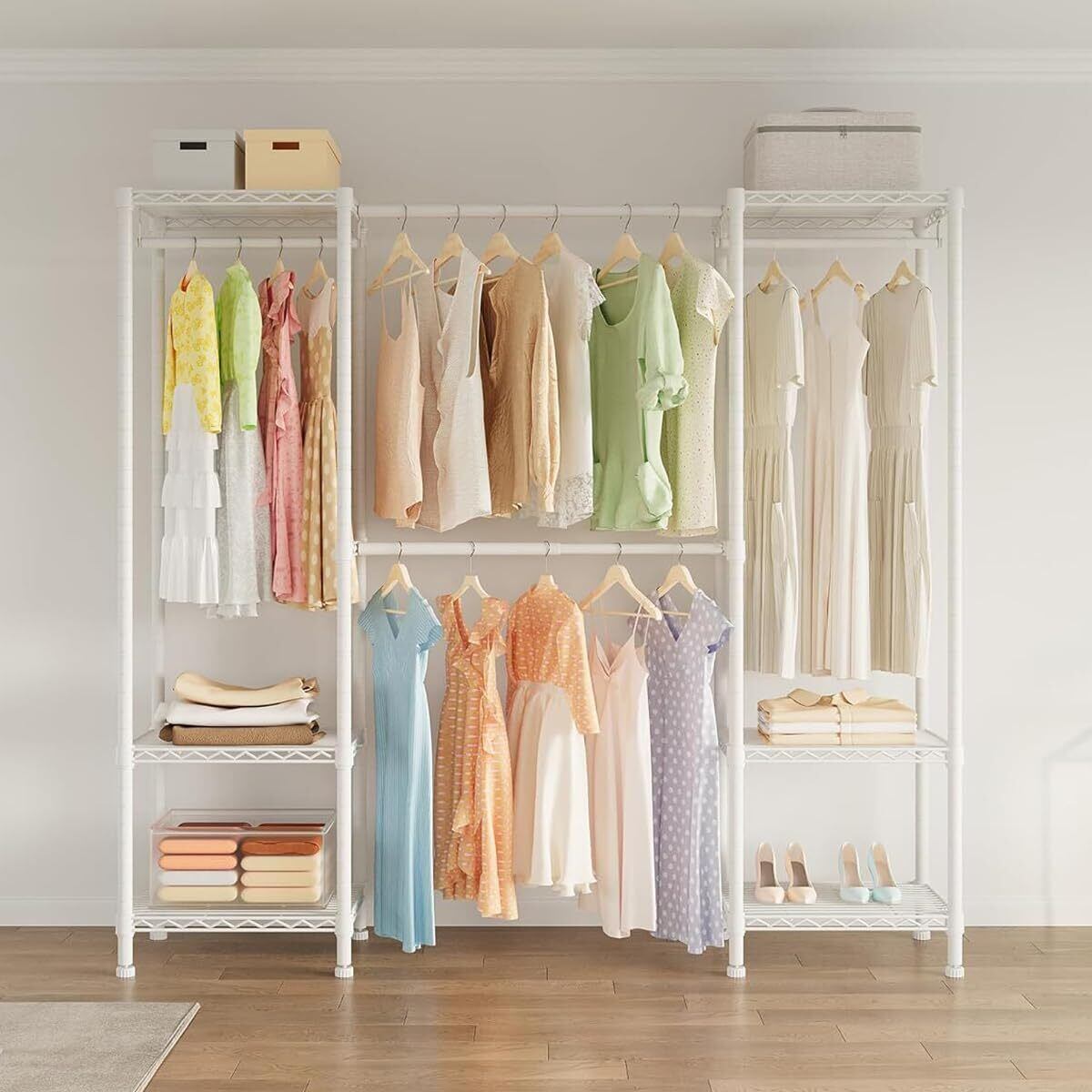 AZAKBL ハンガーラック 大容量 伸縮 幅148~188cm ワードローブ メタルラック 頑丈 洋服ラック洋服掛け 組み立て簡単 衣類収納 高さ調節 省スペース おしゃれ ハンガーかけ コートハンガー 洋服収納 (ホワイト, 幅148-188×奥行40×高さ181cm)