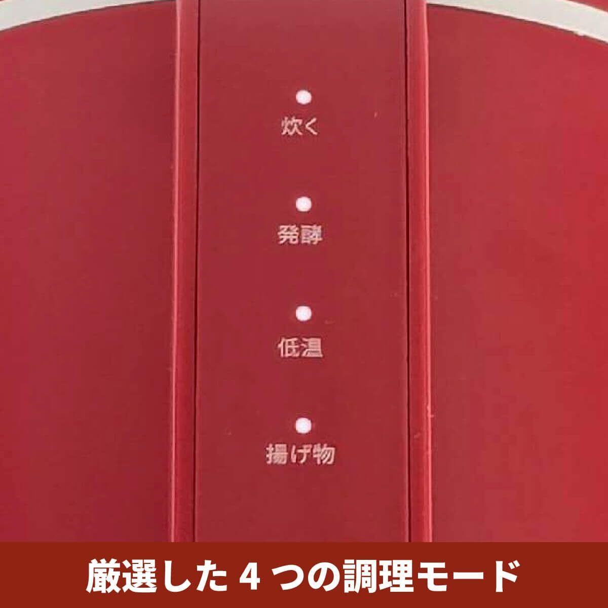 【厳選した4つの調理モード】1合炊きの「炊く」、約42℃をキープする「発酵」、82℃でじっくり熱を入れる「低温」、170℃でカラッと仕上げる「揚げ物」。小ぶりサイズでもレパートリーは無限。