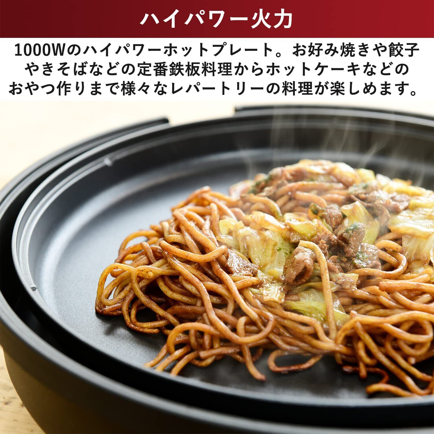 【ハイパワー火力】1000Wのハイパワーホットプレート。お好み焼きや餃子、やきそばなどの定番料理からホットケーキなどのおやつ作りまで様々な料理が楽しめます。
