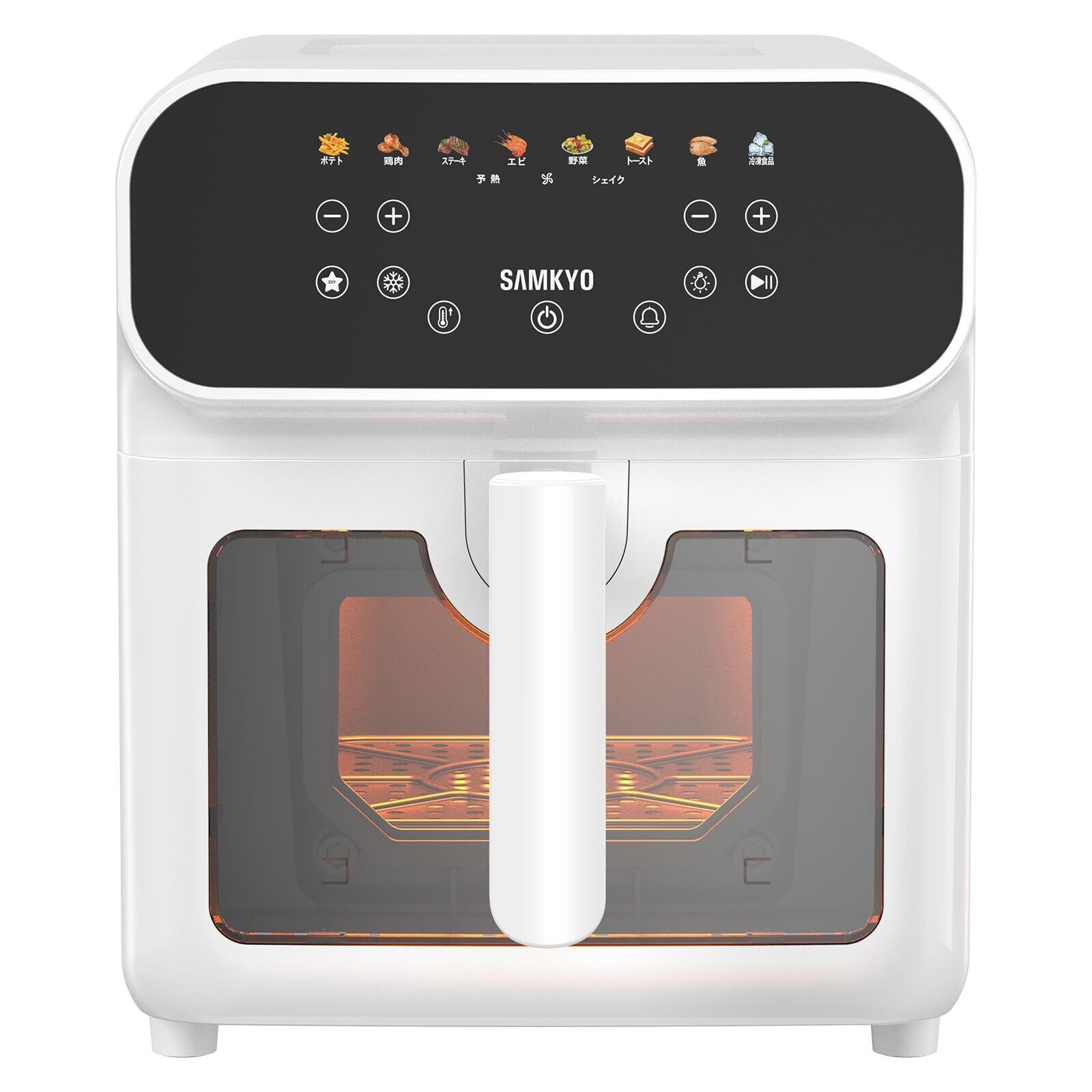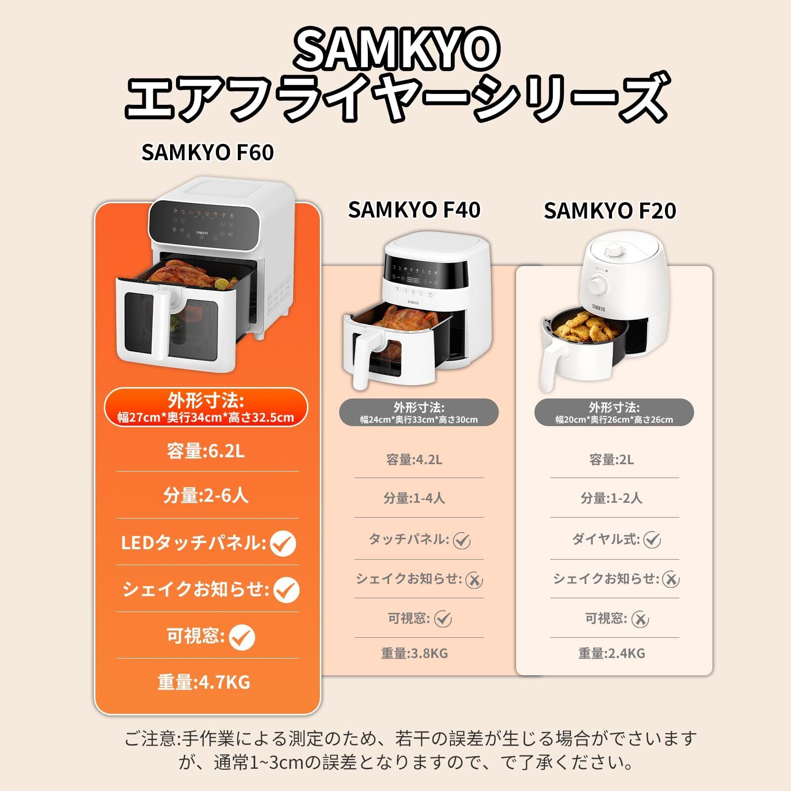 SAMKYO ノンフライヤー 6.2L 大容量 2-6人用 エアフライヤー 可視窓 タッチパネル 日本語レシピ付き ノンフライヤー機 快速調理 フライヤー ヘルシー F60 ホワイト