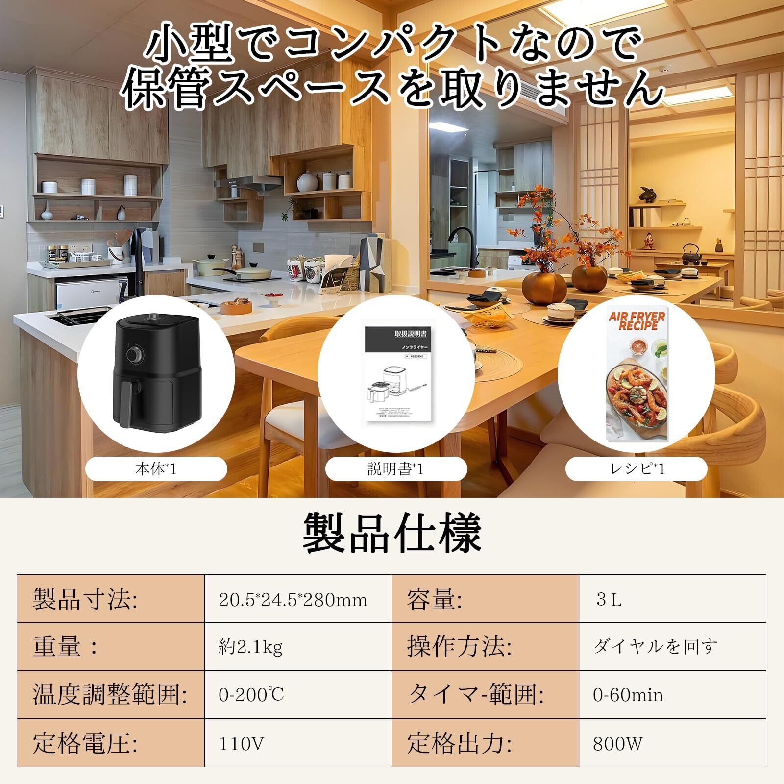 ノンフライヤー 3L容量 家庭用 フライヤー エアフライヤー 最高温200℃ ノンフライヤー 揚げ物 エアフライヤー ポテト 惣菜 日本語レシピ付き タイマー 自動電源オフ 家庭用 省エネ グレー レシピ付き タイマー 自動電源オフ PSE認証済み 引越し/結婚式/お誕生日 プレゼント