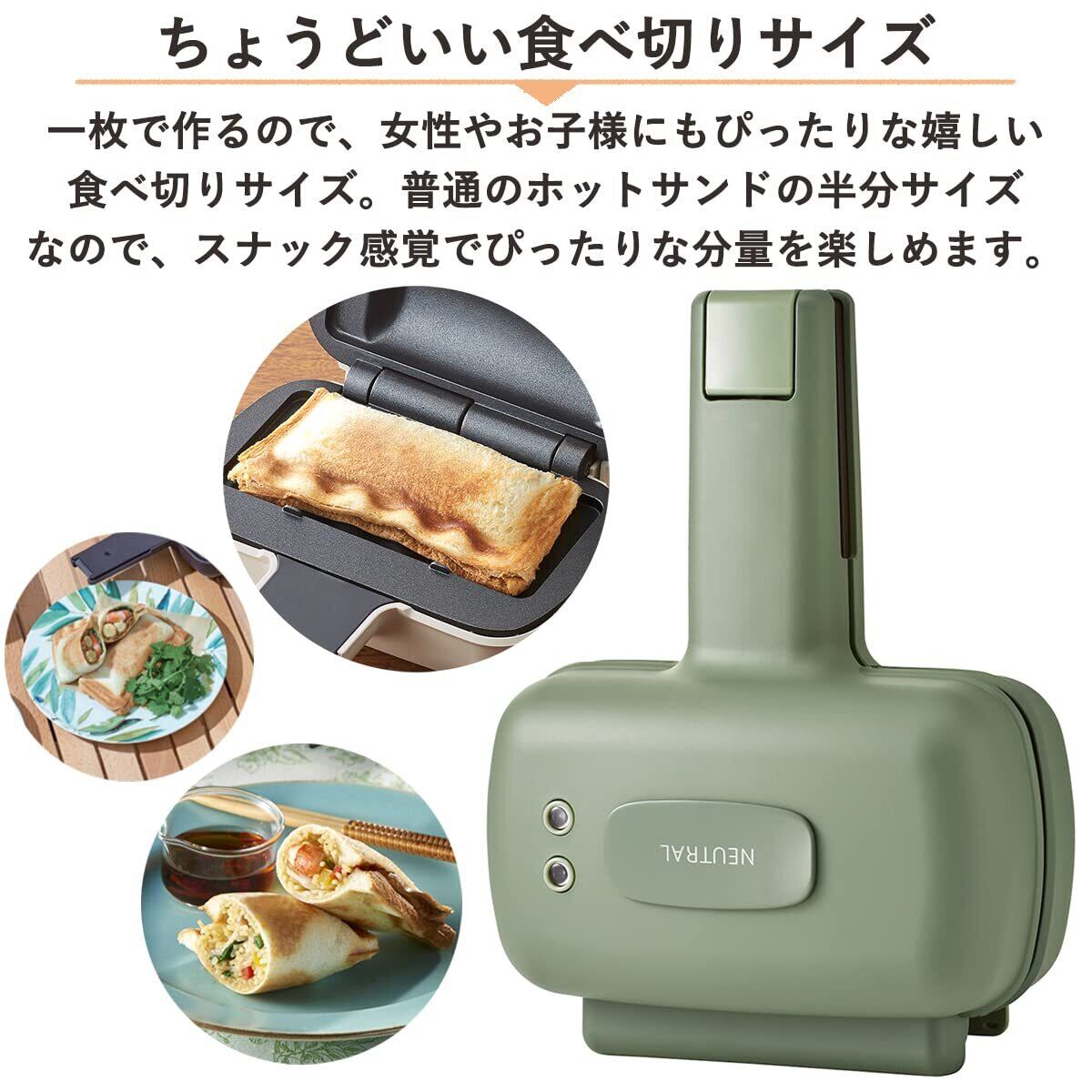 NEUTRAL ホットサンドメーカー ハーフ 1枚焼き 耳まで焼ける ひとり暮らし 食べ切りサイズ 具だくさん コンパクト グリーン NR-K-HS3-GR