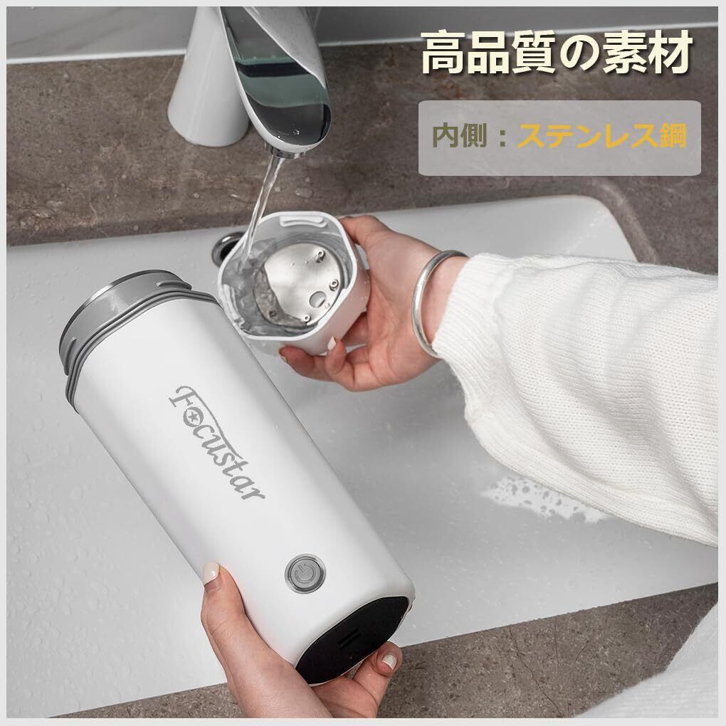 Focustar ポータブルケトル 350ML 電気ケトル 小型 トラベルケトル 低電力 300W ポータブル電源で使える 急速沸かし 空焚き防止 沸騰すると自動オフ 持ち運びやすい 漏れない ステンレス鋼製 携帯ケトル 旅行用 車中泊 キャンプ オフィス 病室 防災用 携帯湯沸かし器 日本語説明書付き PSE認証済み
