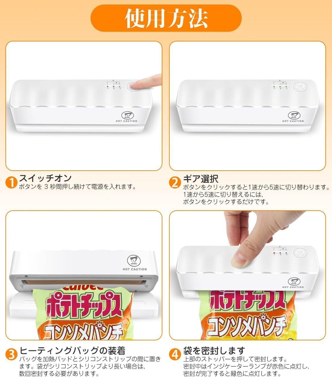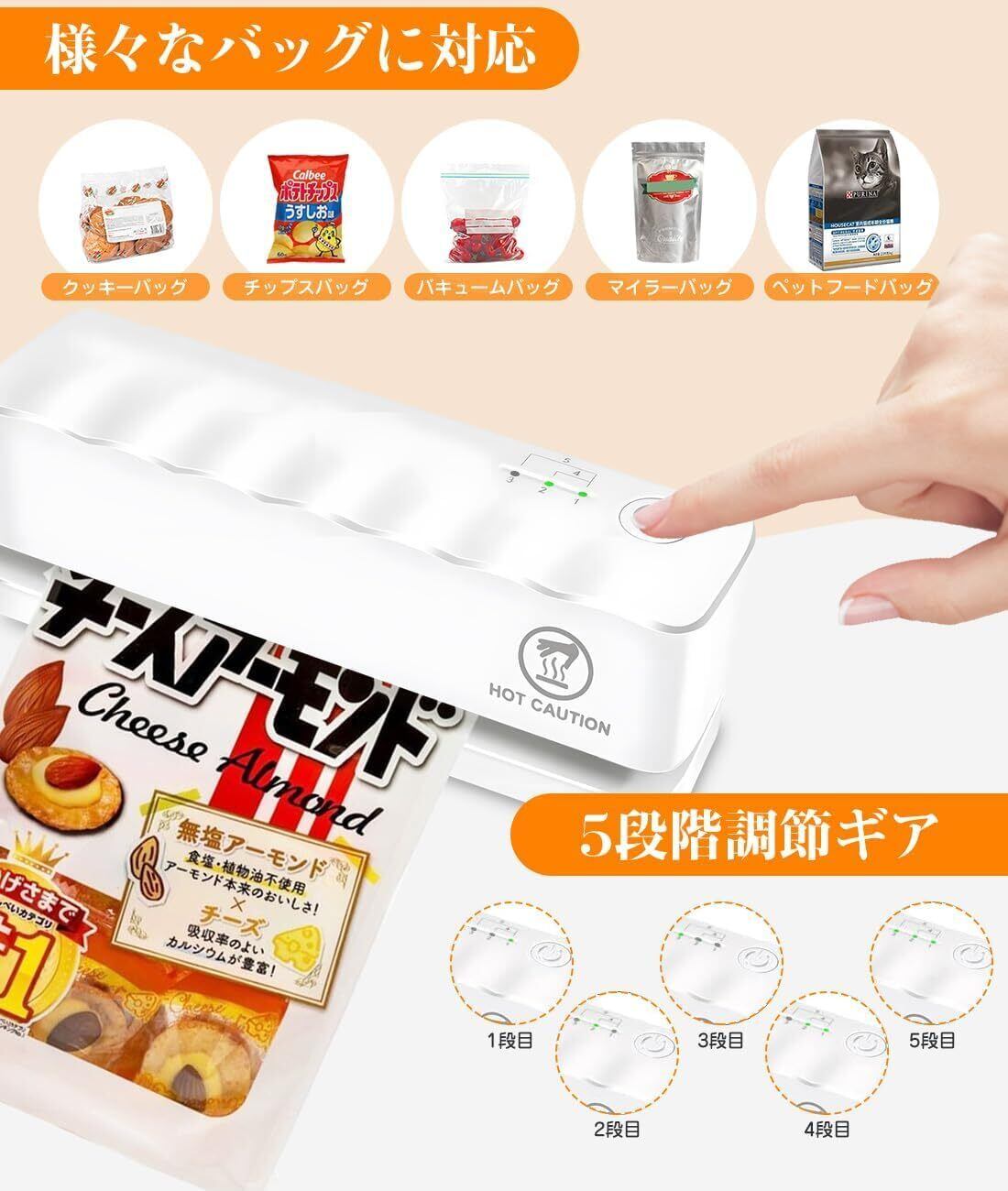 さまざまなバッグに対応:5段階調節で、それぞれ厚袋、普通袋、極薄袋に対応している。ギア1が最も薄く、ギア5が最も厚いです。食品や果物を密封して保存するのに役立ちます。