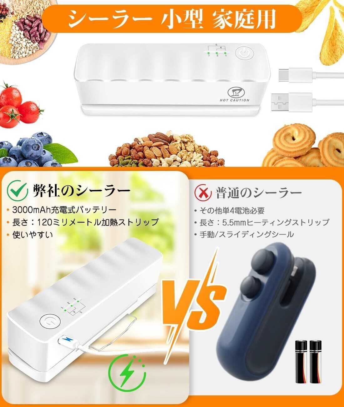 食品を新鮮に保つ:単なる食品真空シーラーマシンではなく、このキッチンガジェットは、家族がスナックや食べ物を残したときに、その心配から解放されます。時間内に袋を密封することで、食品を新鮮に保ち、無駄を避けることができます。 また、ペットフードバッグ、サラダ、チップバッグ、真空バッグなどにも最適です。コンパクトなハンドヘルドシーラーは、スナックを新鮮でおいしく保ちます