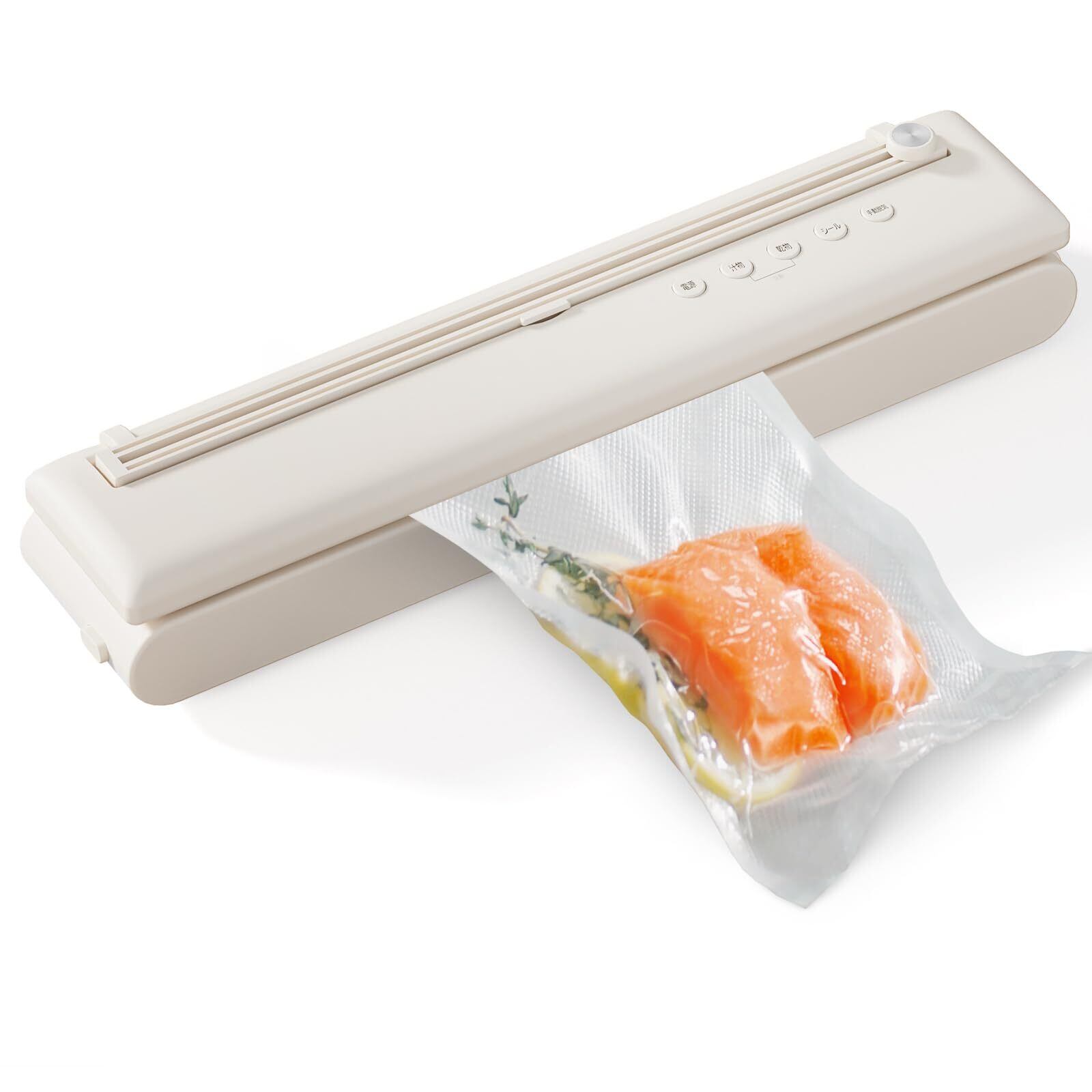 真空パック機 フードシーラー 【乾湿両用/汁物対応】 自動真空シーラー 家庭用 60kPa強力脱気 カッター付き 30cm密封長さ コンパクト設計 低騒音 鮮度長持ち 真空袋10枚付 キャニスター/手動脱気/シールのみ 電源コード式 ベージュ