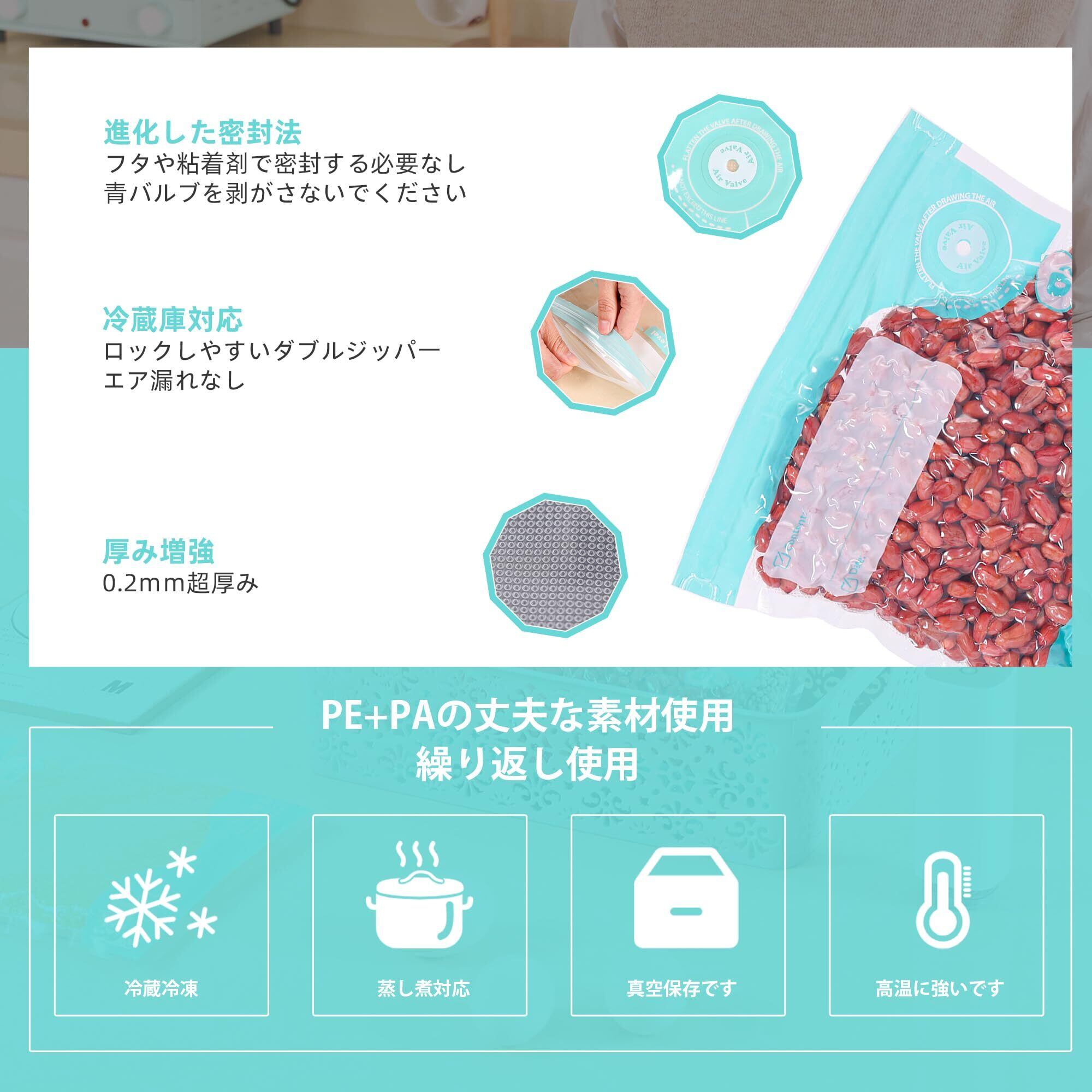 【密閉性が強い】専用密封袋が作った真空状態により、食品の腐敗、酸化、変質などを防げ、食品の保存に最大限の便利さをご提供できます。本製品は、食品の新鮮度を3〜5倍に延長し、食物の元の味と色を保留することができます。新しいバルブ、電動ポンプと合わせてより楽に真空パックができる。*ご注意:バルブ部分を破れたり、剥がしたりしないでください。真空できない恐れがあります。