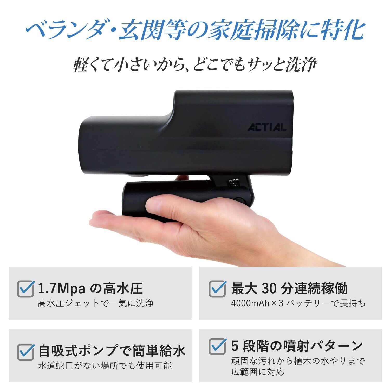 ACTIAL コードレス高圧洗浄機 単品モデル ペットボトル給水対応 充電式 小型軽量 家庭用 洗車 ベランダ 網戸 自転車掃除 (単品)