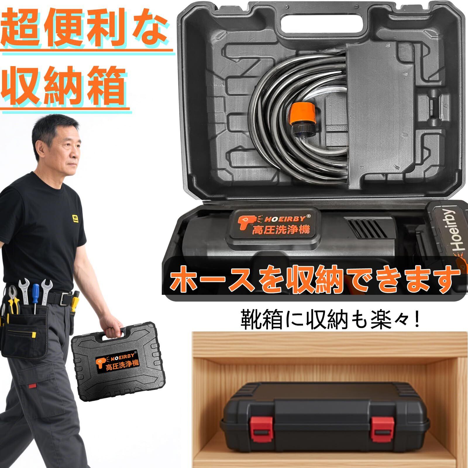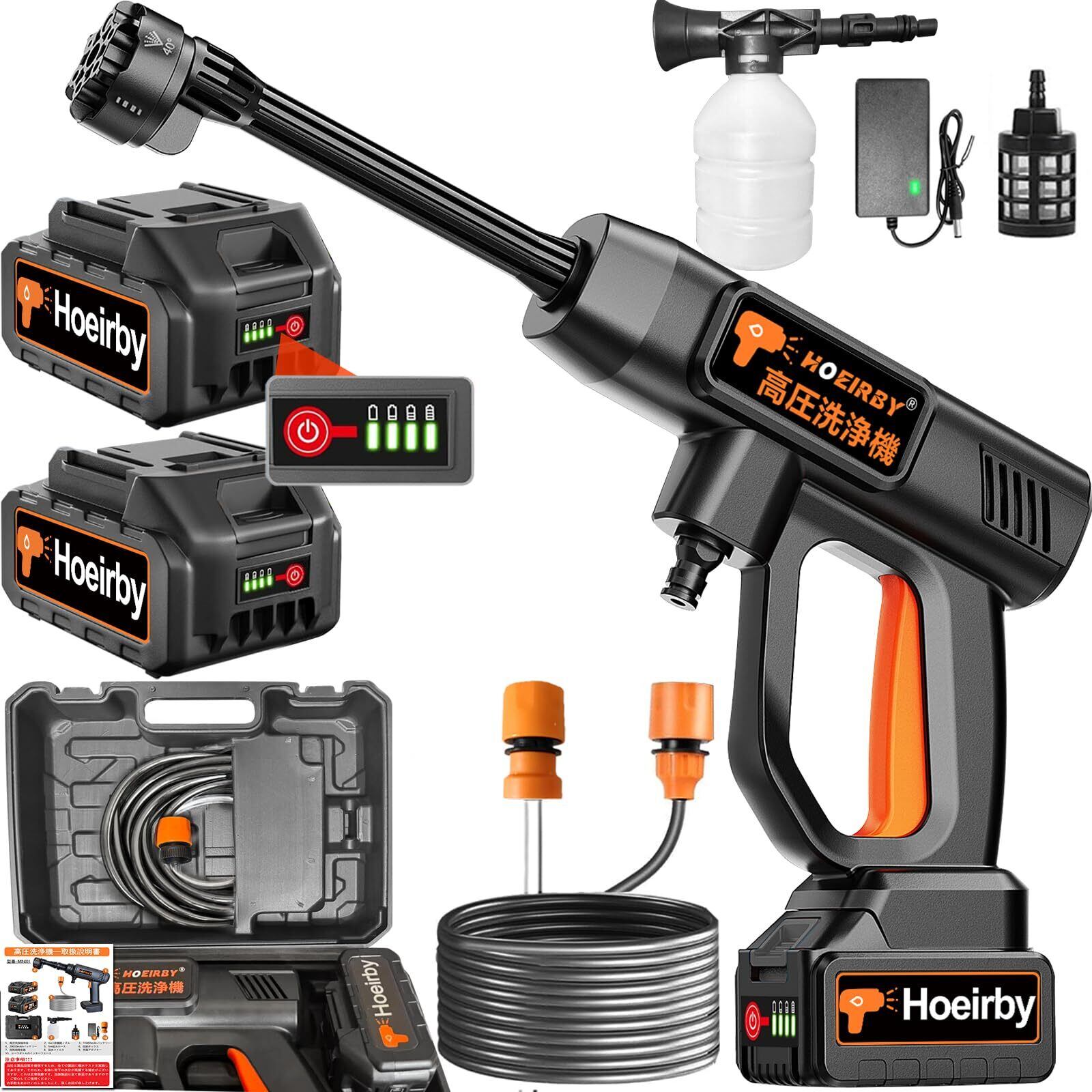 【タキタキ工具店監修・24時間アフターサービス対応】Hoeirby高圧洗浄機 コードレス 充電式は、全世界で300万人以上の消費者にサービスを提供しています、品質は信頼できます。ご購入日から3年間の製品付きで、日本語の取扱説明書も同梱。セット内容は、洗浄機本体、バッテリー2個、充電器、6in1ノズル、フォームノズル、5m給水ホース、フィルター、ペットボトル用給水アダプター、収納ケース、日本語説明書となっております。高圧 洗浄機は出荷前に厳格な品質管理を行っておりますが、万が一お届けした商品に不具合が発生した場合には、「注文履歴」→「出品者へ連絡」から弊店までご連絡ください。24時間に日本ローカル対応できる、スタッフはいつでもご連絡をお待ちしております。