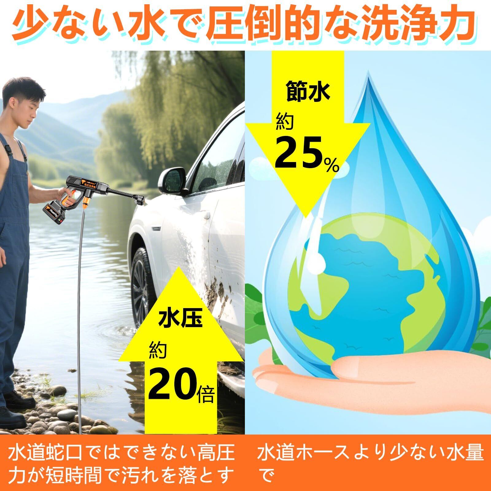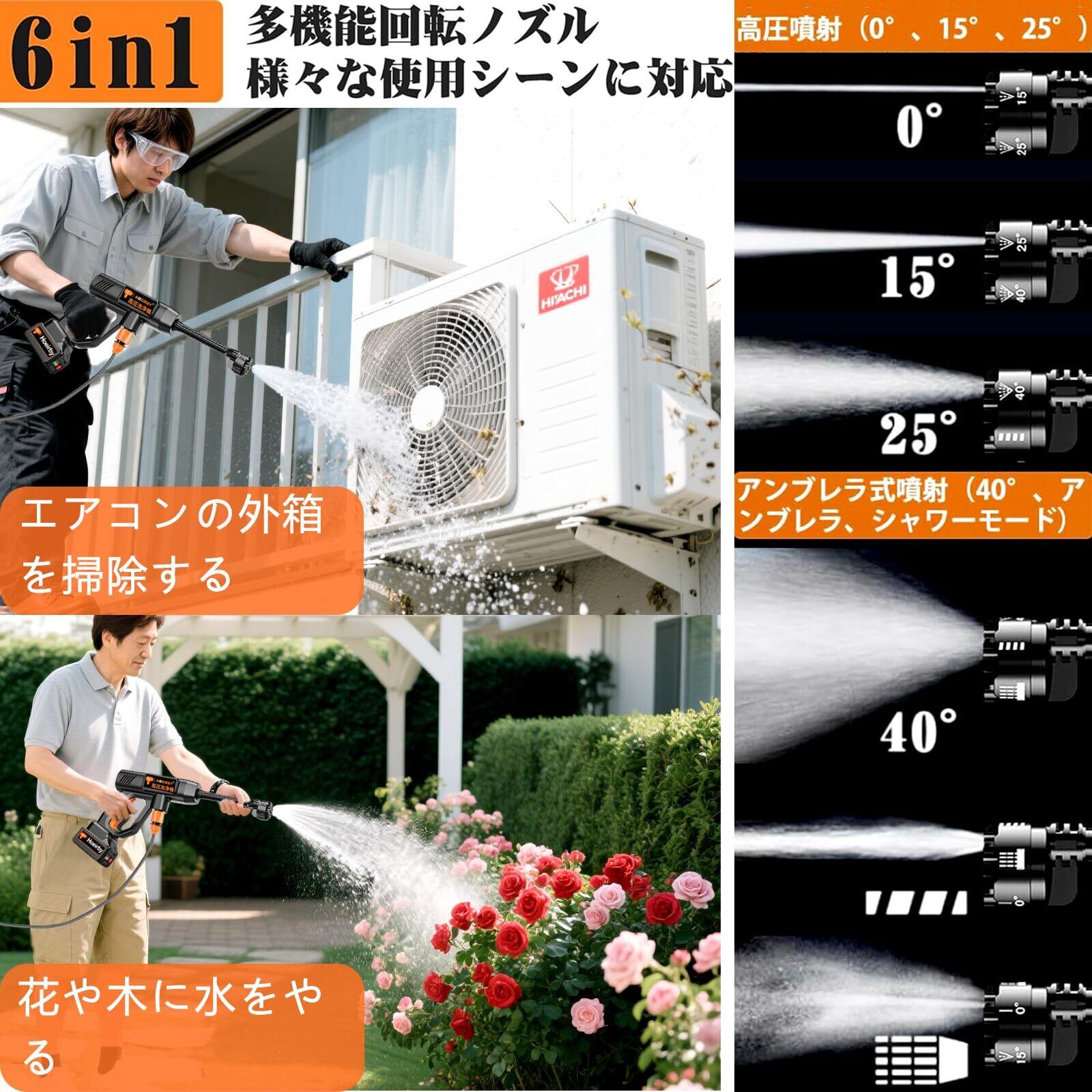 高圧洗浄機【2025新昇級版モデル 】高圧洗浄機 コードレス 充電式 8MPa ブラシレスモーター 洗車店監修 残量表示 PSE認証済み バッテリー2個 20000mAh マキタ電池互換 多機能6in1ノズル 軽量 小型 自吸式 洗車機 5m耐久ホース 厚手フォームボトル ペットボトル給水対応 噴射距離10M 改良収納ケース 洗車 庭 駐車場 排水溝 外壁 浴室 ベランダ 家庭用 日本語説明書
