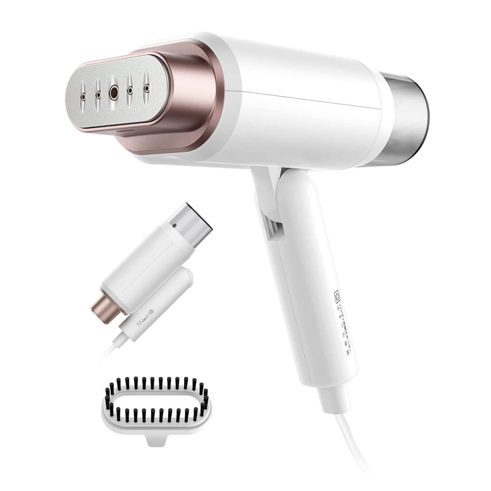 スチームアイロン 衣類スチーマー ハンガーにかけたまま 180ml水タンク ハンディアイロン 2段階スチーム シワ伸び・除菌・消臭 折り畳み式 軽量 ブラシ ミトン付き