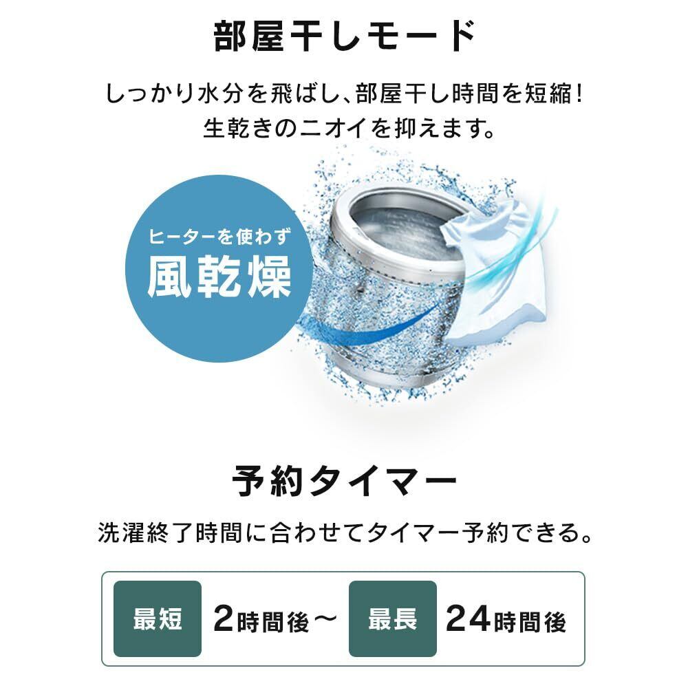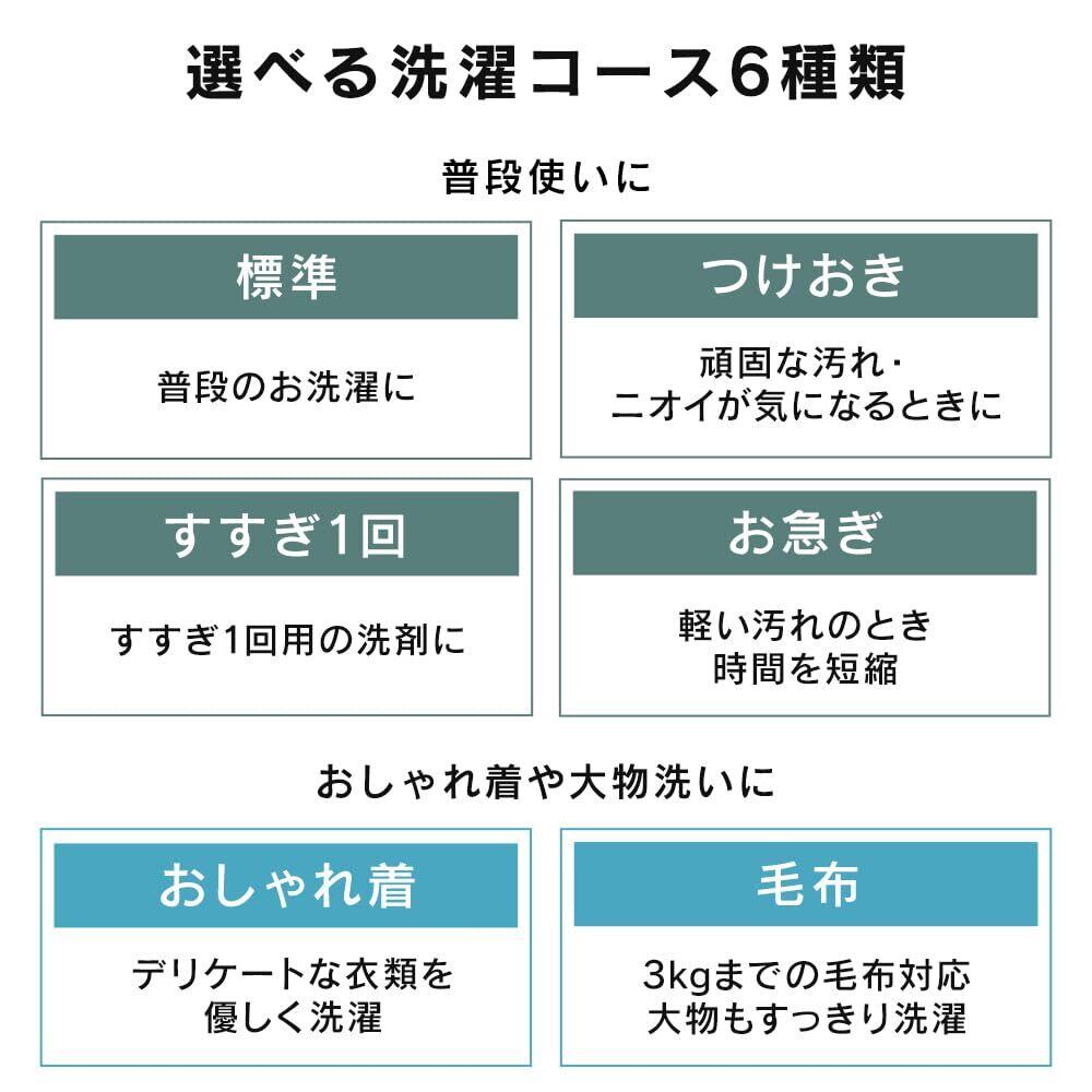 ◆用途に合わせて選べる8コース標準:ふだんの洗濯にすすぎ1回:洗濯時間を短縮したいときお急ぎ:もっと早く洗濯したいときおしゃれ着:ウールやレースの付いた製品につけおき:汚れが多いときに毛布:毛布などの大物洗濯に槽洗浄:洗濯槽の汚れを落としたいときに槽乾燥:洗濯槽の乾燥をするときに◆優れた使いやすさ洗剤・柔軟剤の専用投入スペースがあります。操作部は4段階設定。洗濯物に合わせて細かく設定することができます。◆予約タイマー何時間後に洗濯を終了させたいか、タイマー予約できます。起床時や帰宅時間に合わせて洗濯終了時間をタイマー予約すれば待ち時間の短縮になります。