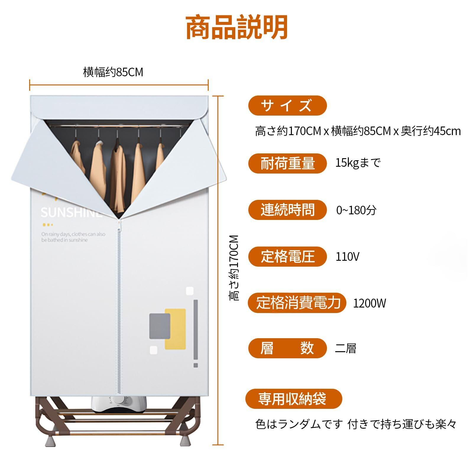 【型番とサイズ】電圧:110V 消費電力:1200W 最大容量:15kg 電源プラグ:日本用 サイズ:高さ約170cm×幅約85cm×奥行約45cm 折りたためサイズ:高さ約85cm×幅約45cm×奥行約22cm コード長:150cm 省エネモータ搭載。