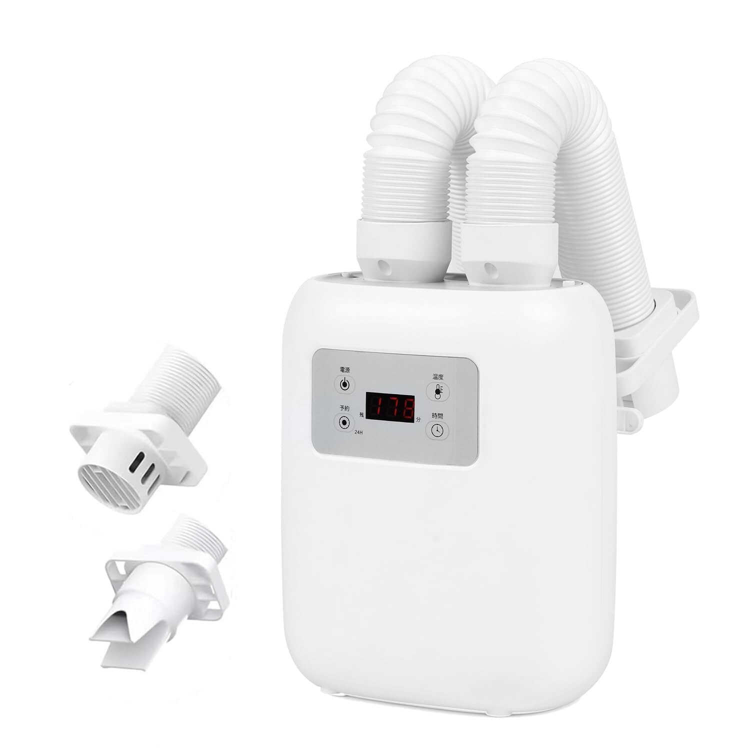 【一台多役・1000Wハイパワー・ツインノズル】布団乾燥機は我々の生活に暖かさを与えるパートナーです。布団の乾燥と温めは当然、殺菌消臭、靴や衣類乾燥、ダニ退治、送風、湿気除去など様々な使用シーンに対応します。消費電力1000Wなので、従来品より風量が多く、乾燥効率も驚くほど向上しました。ホースは取り外し可能、伸縮自在の構造で、ホースは約80cmまで伸び、ツインノズルとシングルノズルの間では簡単にチェンジでき、乾燥する位置も手軽に変更することができます。