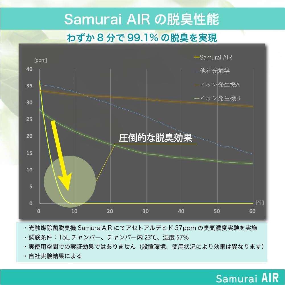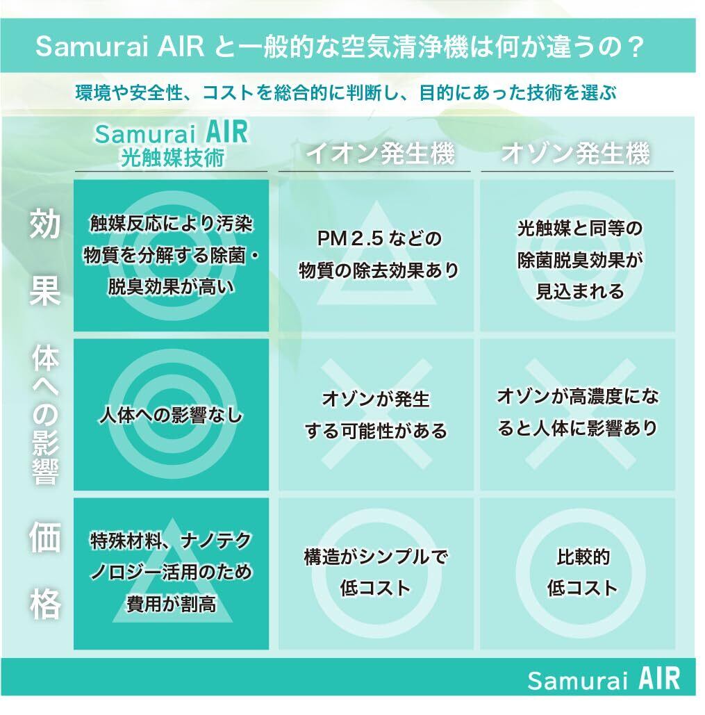 【7nmという日本ブランド名の由来】 ①これは光触媒として働く酸化チタンの粒子サイズ、7ナノメートルを指しています。この微細な粒子サイズが、除菌と脱臭の効率を高める要因となります。この「7nm」という数字は、私たちが目指す高い「空気品質」と「生活品質の向上」を象徴しています。 ②7nmブランドのSAMURAI AIRはコンパクトながら強力な空気清浄機能で、クラウドファンディングで548%の資金集めに成功した注目の製品です。