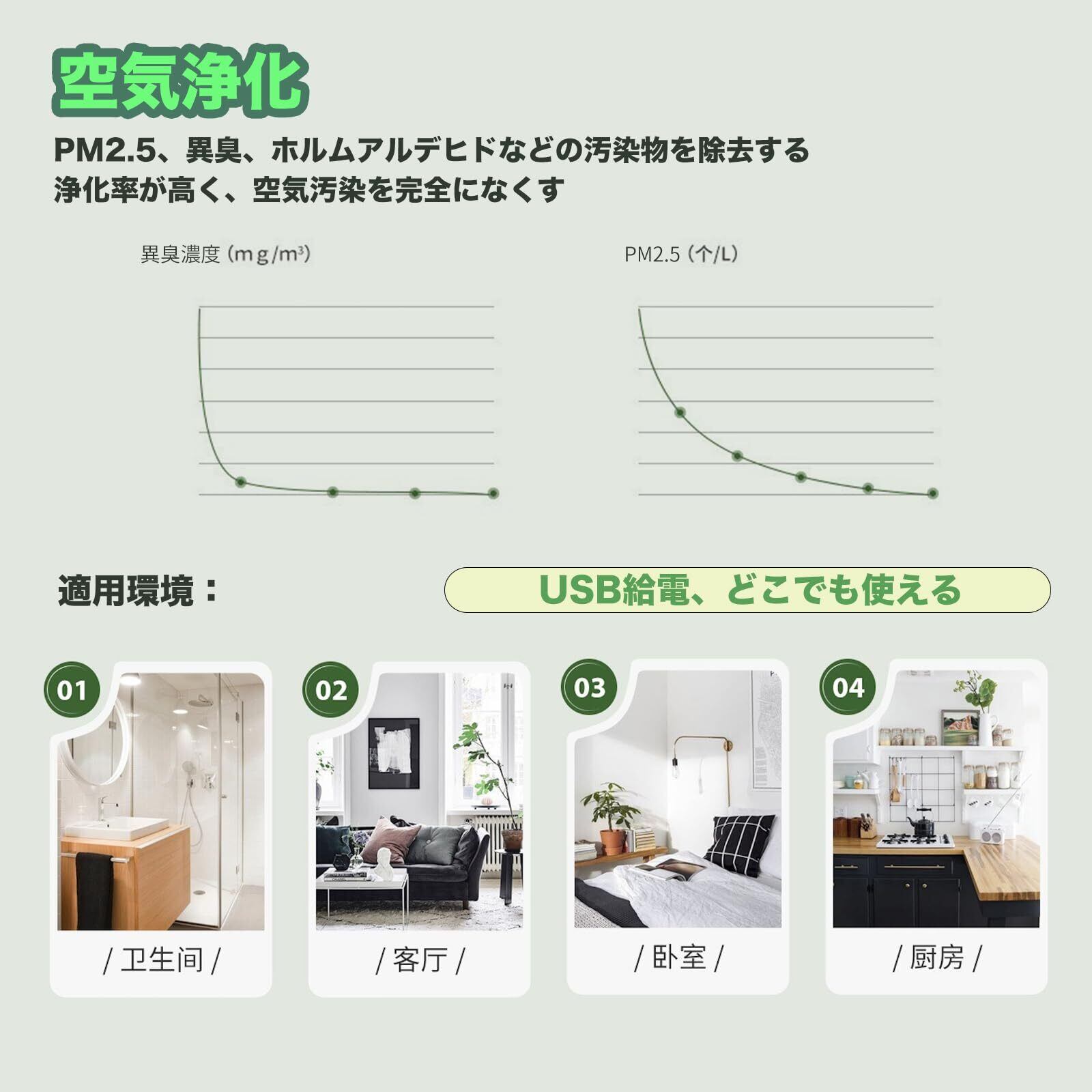 マイナスイオン 空気清浄機, USB式, 小型脱臭機, 人体無害 ペット 部屋 トイレ 強力 消臭 イオン発生器 静音