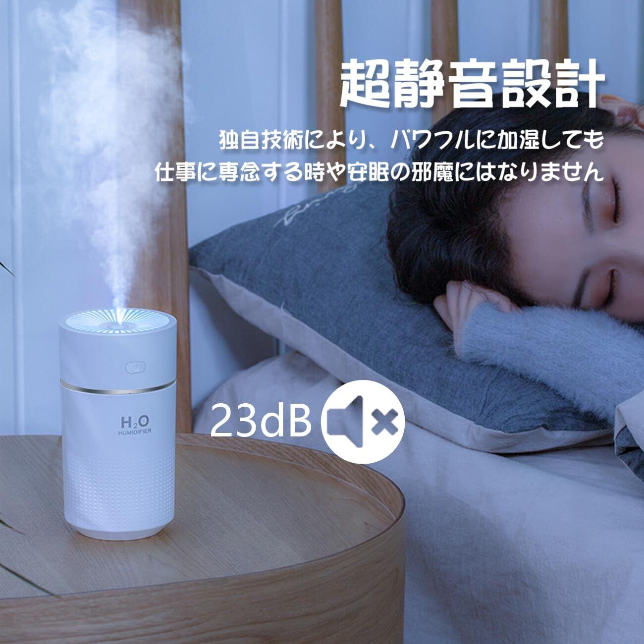 KMJ 卓上 加湿器 小型 超音波式 静音 ナイトライト 強力 大容量 360ml USB アロマ 対応 ポータブル ミニ かしつき デスク オフィス 寝室 車 メーカー2年 プレミアム ( ホワイト )