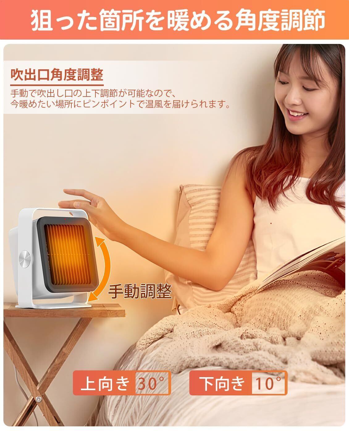 ●ピンポイントで暖められる角度調節機能付き。
