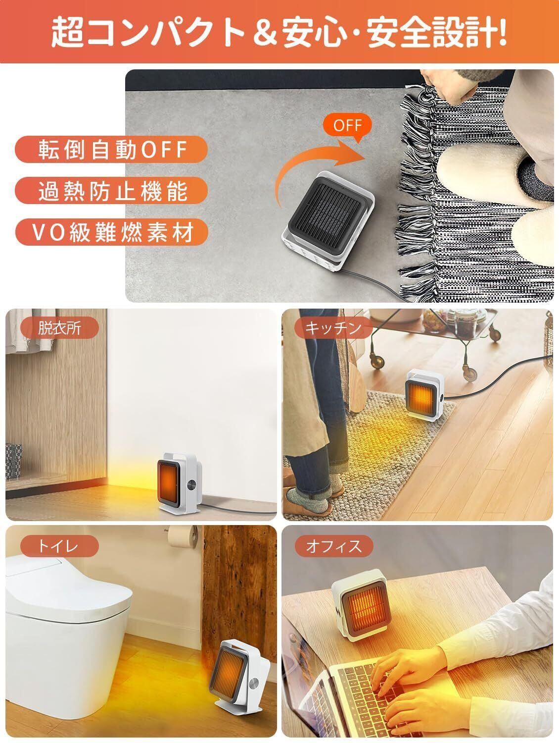 ●卓上やデスク下の足元、脱衣所・トイレの補助暖房としてなど様々なシーンで活躍する。