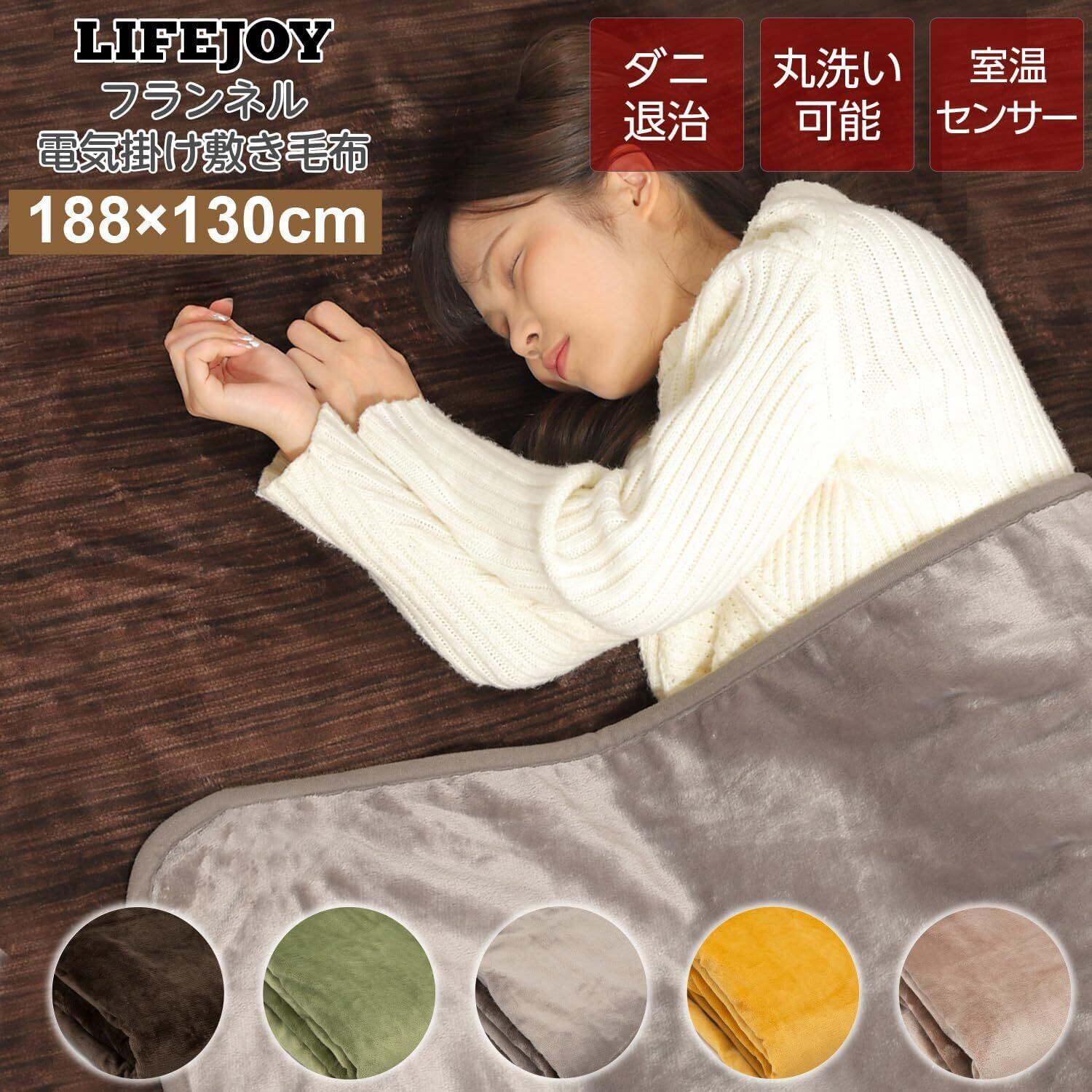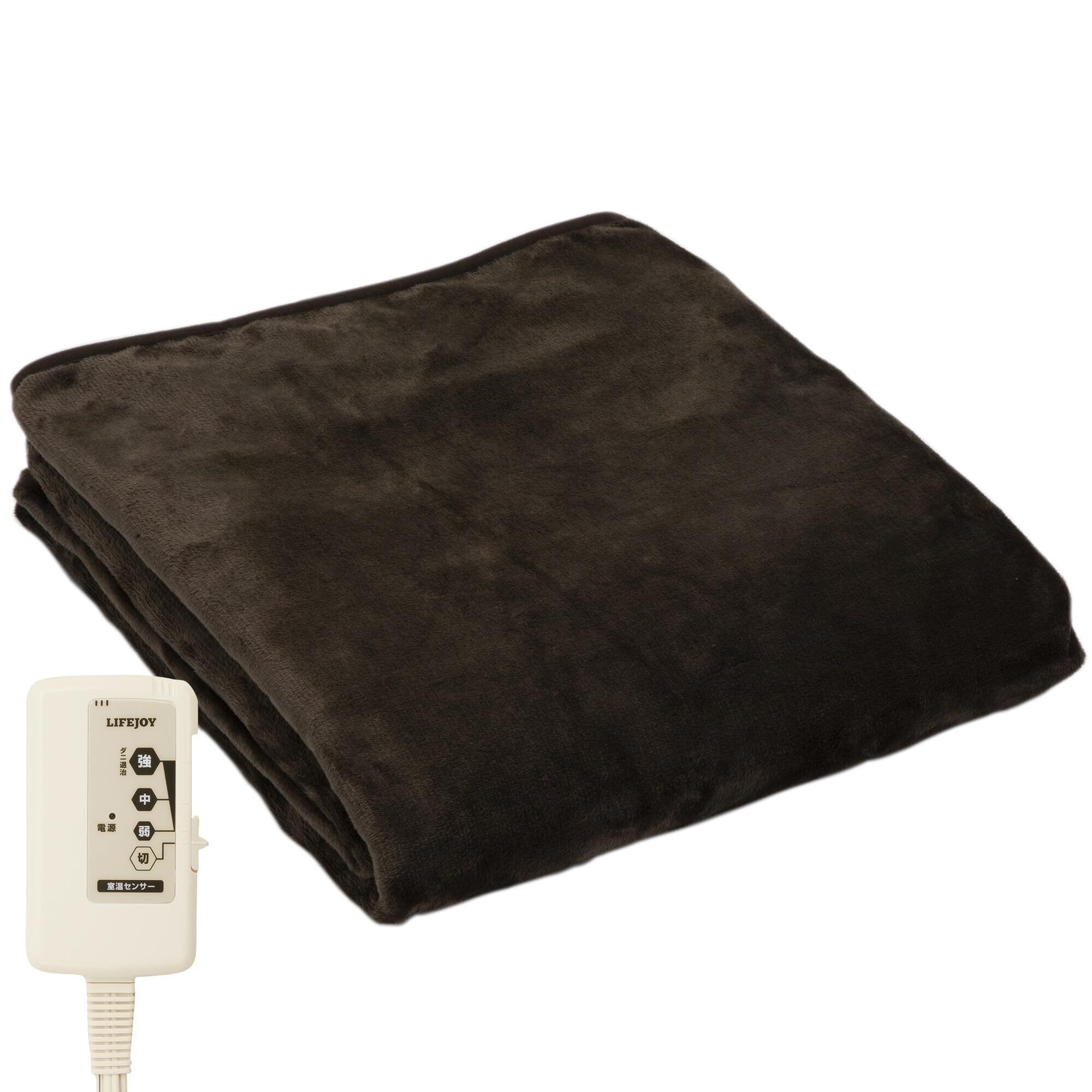 ライフジョイ 電気毛布 掛け 敷き 兼用 188cm×130cm 洗える 両面フランネル 室温センサー付 タイマー機能無 ふわふわ ダークブラウン JCBR803B