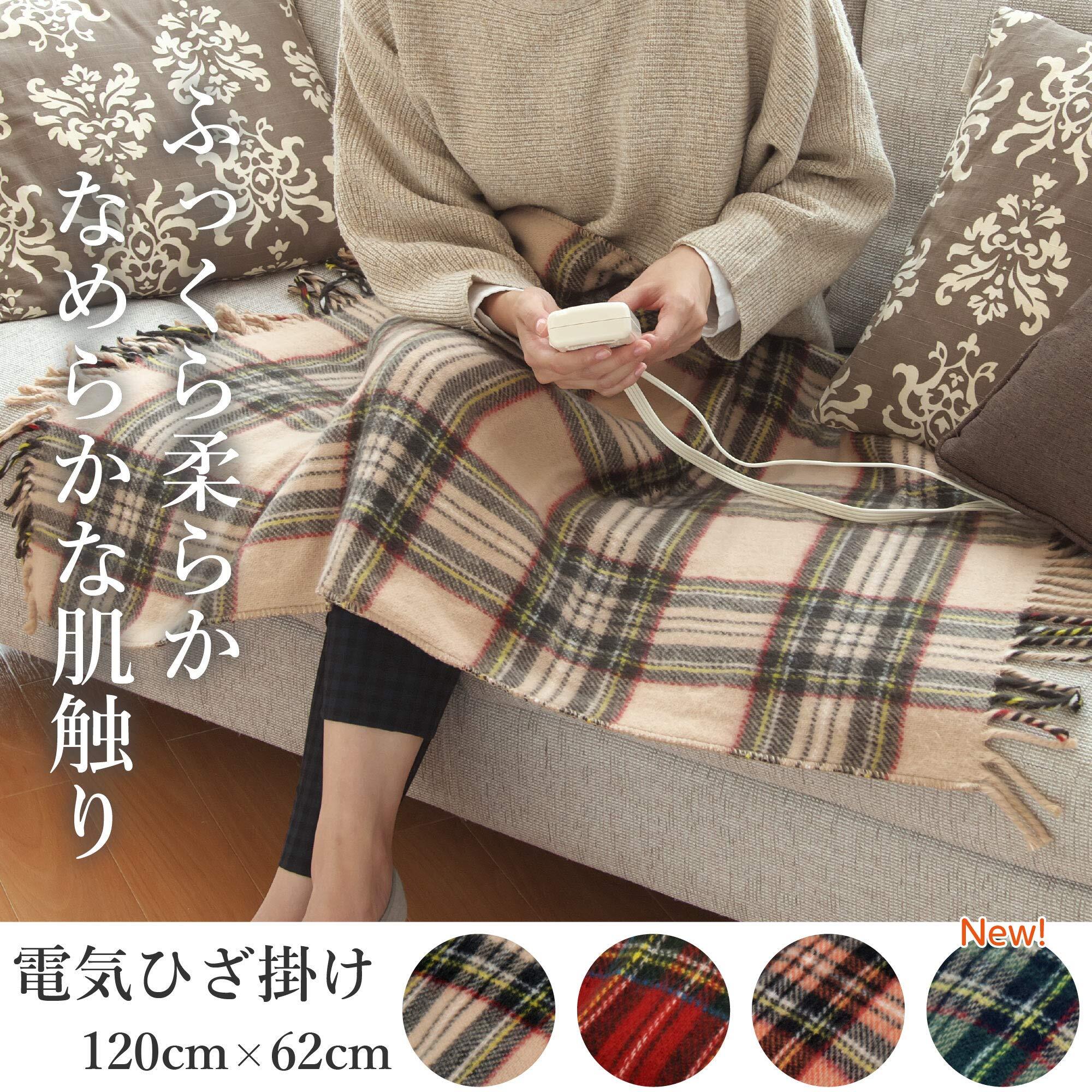 ライフジョイ 電気ひざ掛け ベージュ チェック柄 120cm×62cm 電気毛布 洗える ブランケット ふわふわ あったか JPN121CC