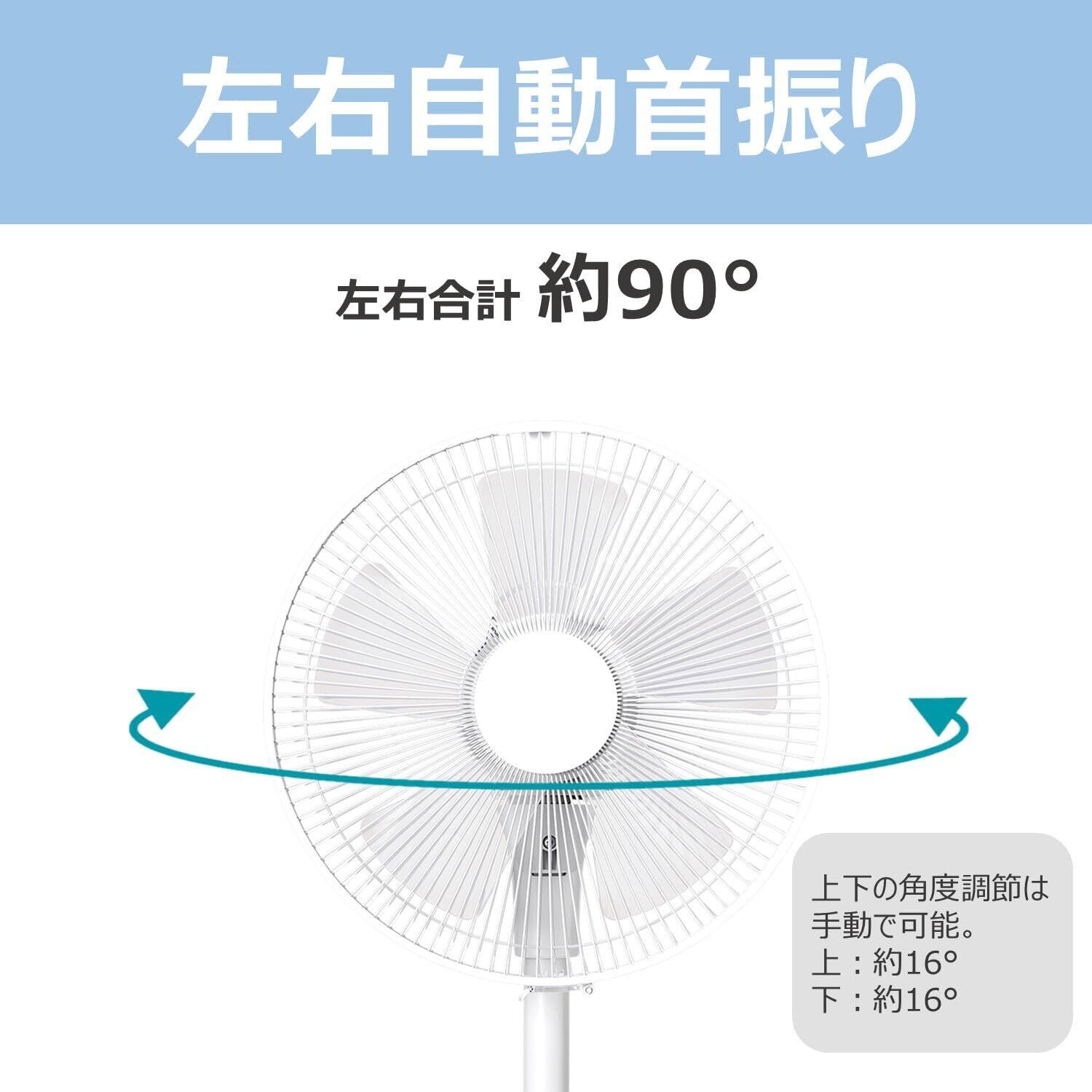 【左右自動首振り】左右自動首振りは左右合計90度、上下の角度調整は手動で上16度、下16度に調整可能。お好みの角度に調整して、快適に過ごせます。
