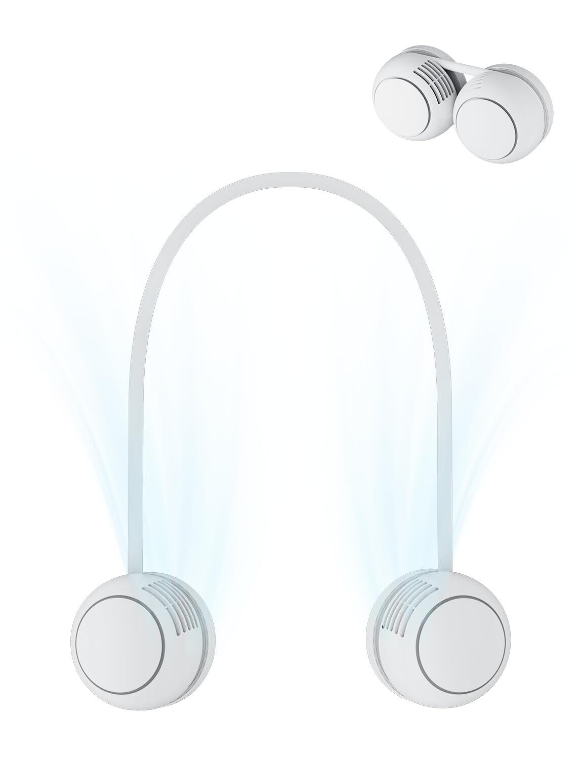 【折り畳み首掛け扇風機】ネックバンドファンはくるっと巻いてコンパクトに収納可能です。羽根なしタイプで、髪や手を巻き込む心配がありません、安全安心に使用できます。 荷物が多い時や雨の日など、両手を解放が自由に使えます。シリコン素材で肌に直接触れるネックバンド部分には、やわらかな感触で首にやさしくフィットすることができます。肌に触れる面積を最小限にし、密着することで生じる汗やムレなどの不快感を最低限に抑えています。アームを巻くことで長さの調節もでき、老人から子供まで自分に合わせたサイズにセットすることも可能です。