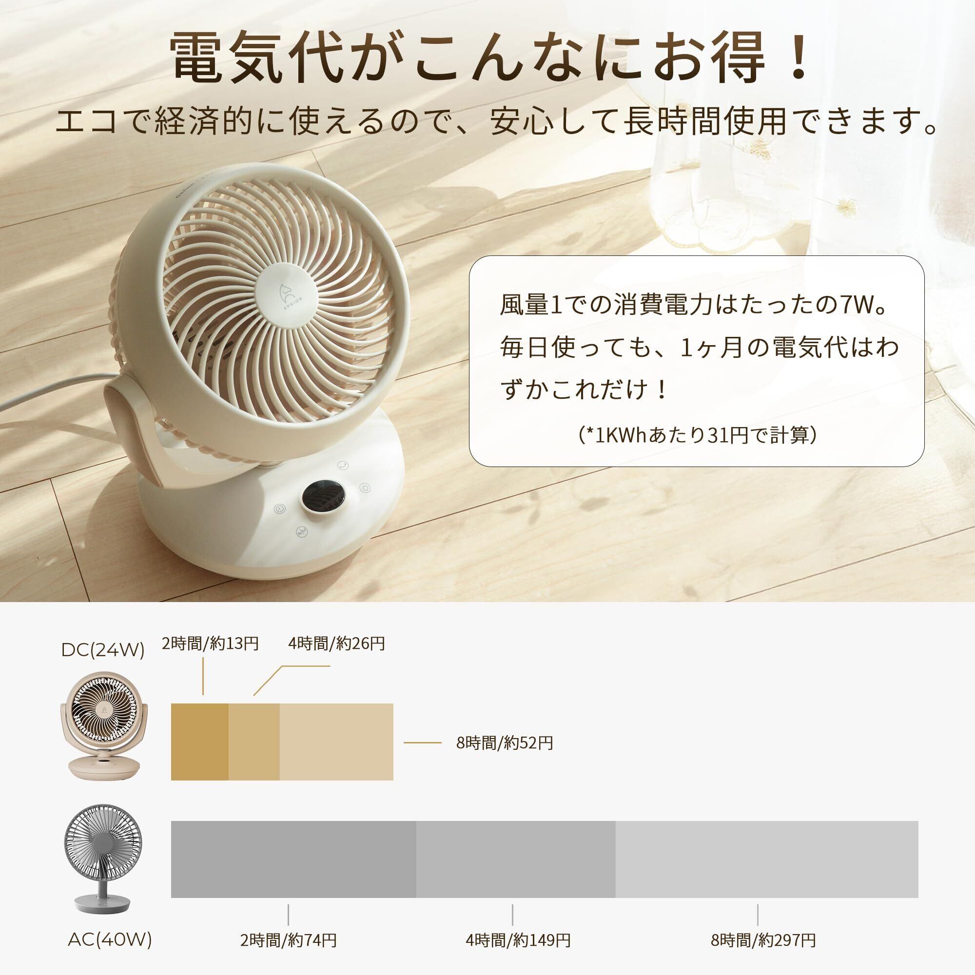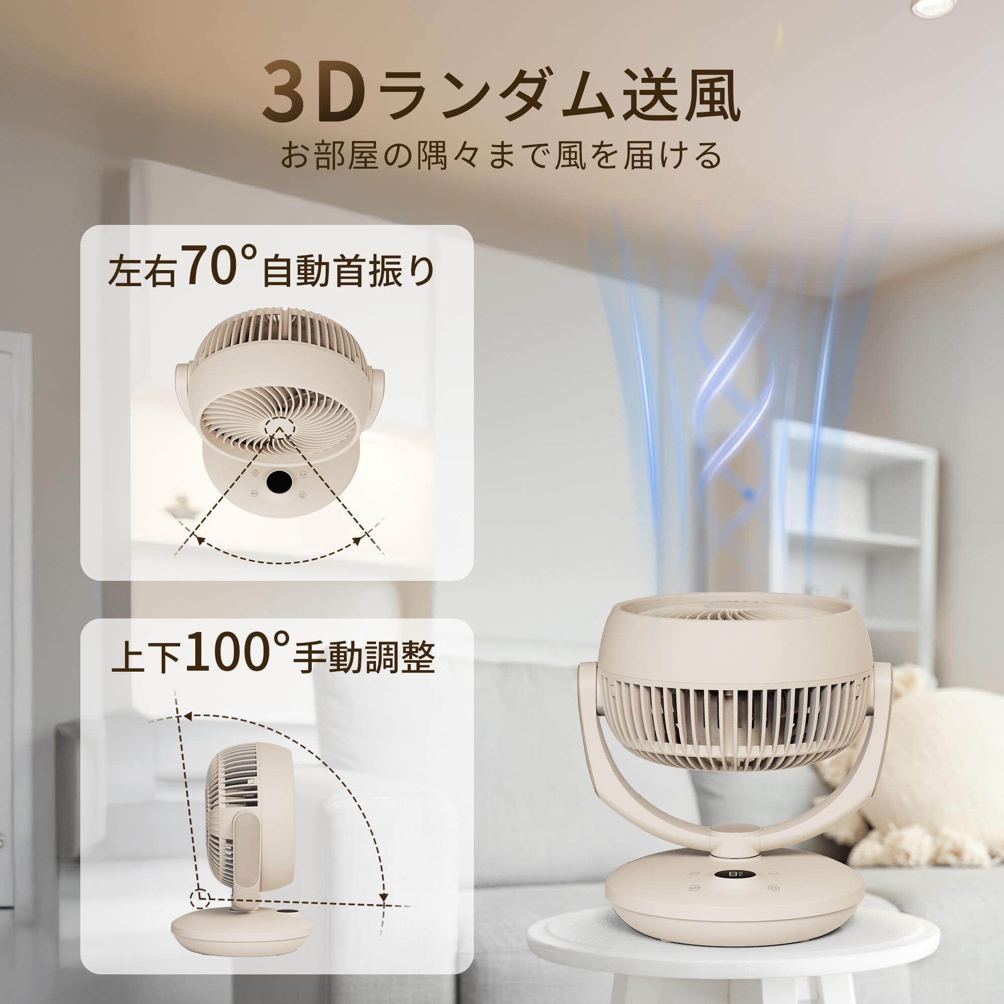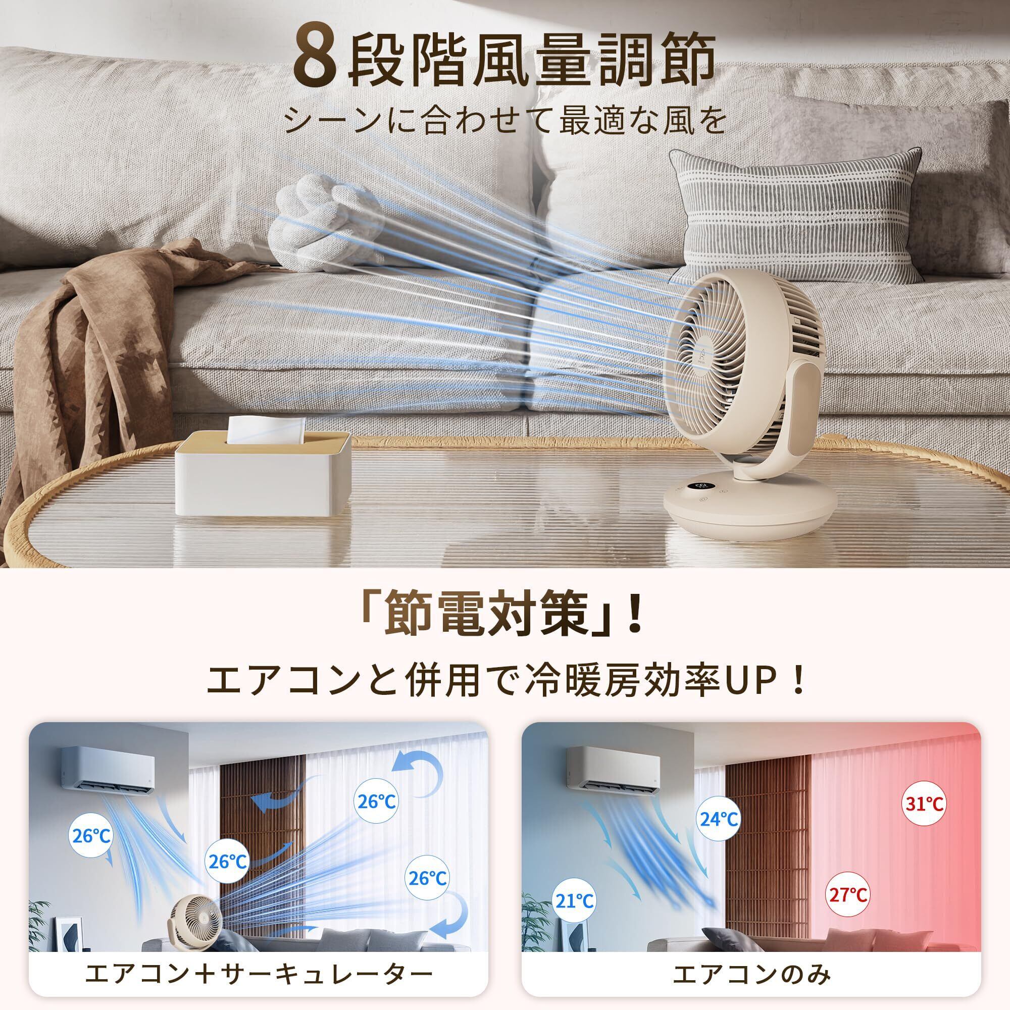 サーキュレーター 静音 省エネ 扇風機 【猛暑対策 360度8m強力送風】エペイオス(Epeios) 卓上扇風機 DCモーター COCO 小型 左右首振り 分解洗える リモコン付き 節電 8段階風量調整 9Hタイマー 3つ送風モード 23dB コンパクト 24畳対応 一台多役 熱中症対策 梅雨除湿 換気/空気循環/部屋干し/洗濯物乾燥 寝室/オフィス冷房/暖房適用 ココナッツベージュ