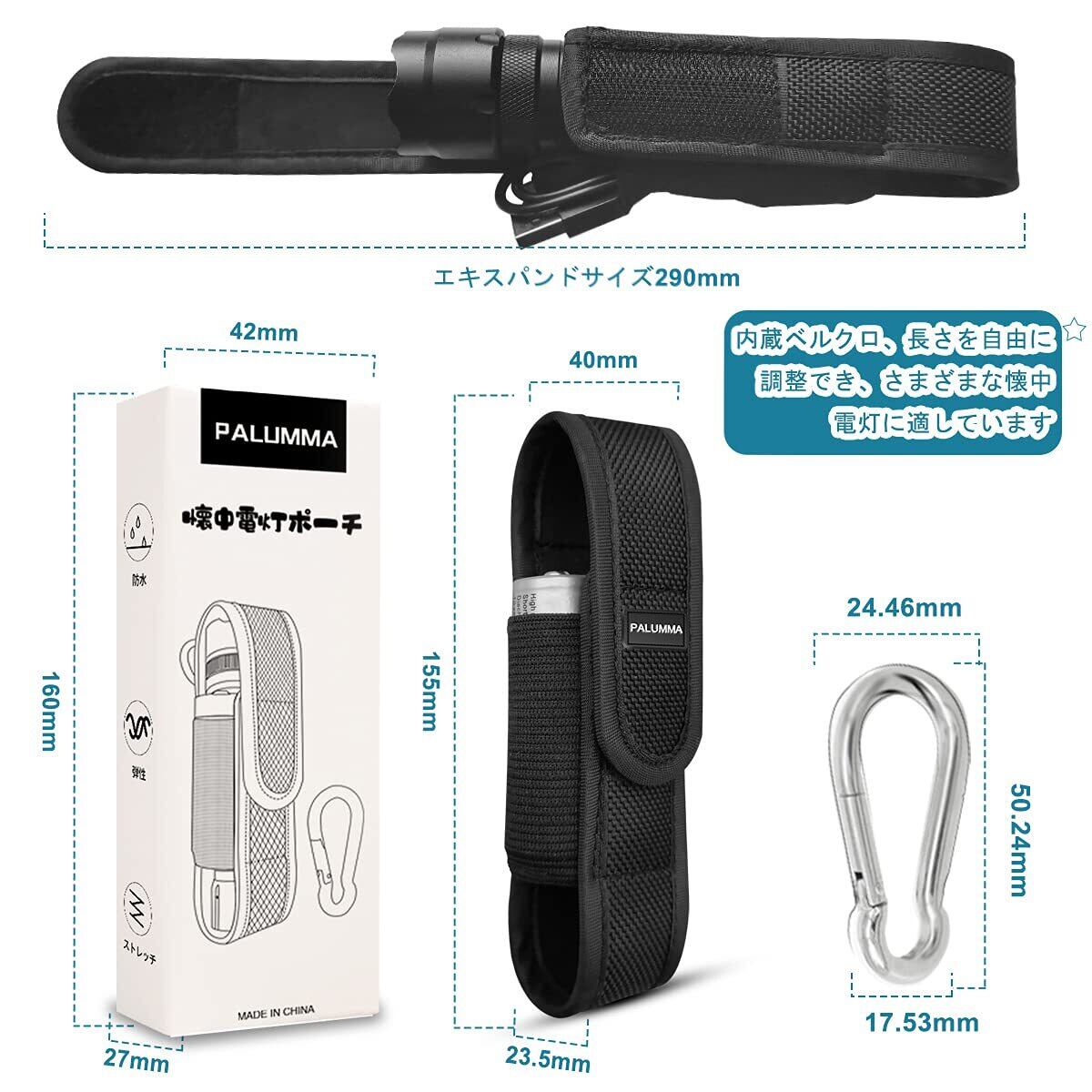 Palumma 懐中電灯ホルスター ライト用ポーチ 収納バッグ ケース ナイロンカバー 弾力性 耐久性 小型 持ち運び便利 アウトドア 夜間作業用 ブラック (12.5~17cm)