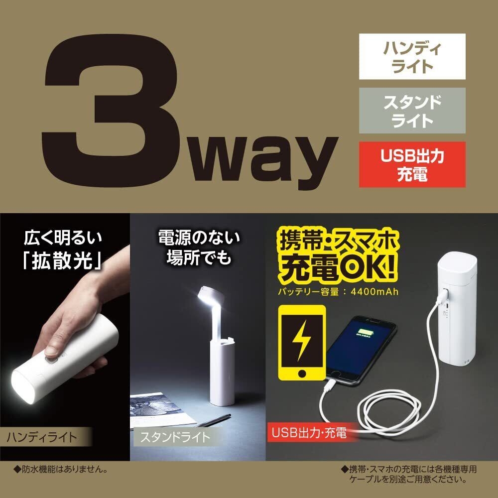 モバイル充電できるコンパクトなLEDライト。ハンディ(懐中電灯)、スタンドライト、携帯電話・スマホ充電の3WAYライト。