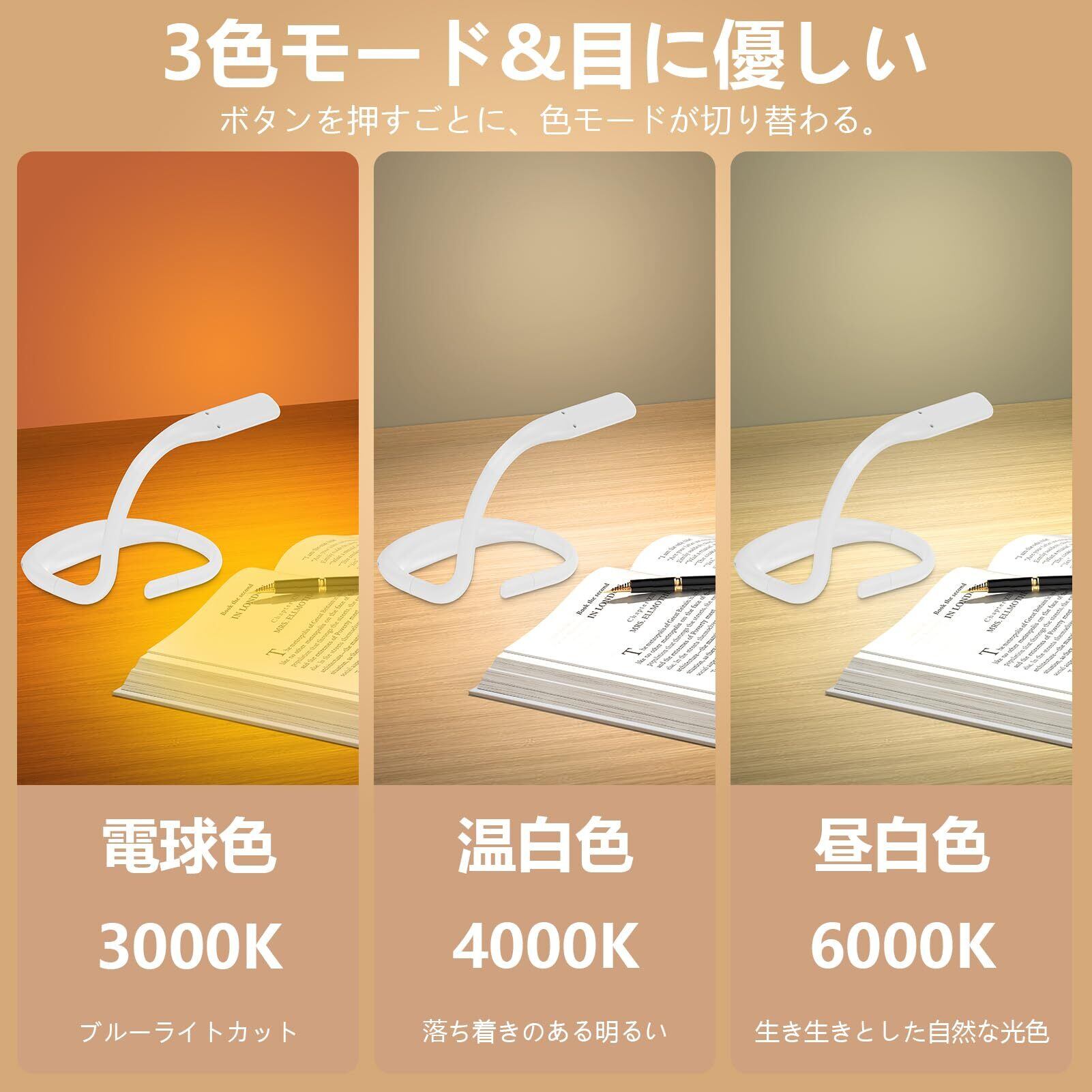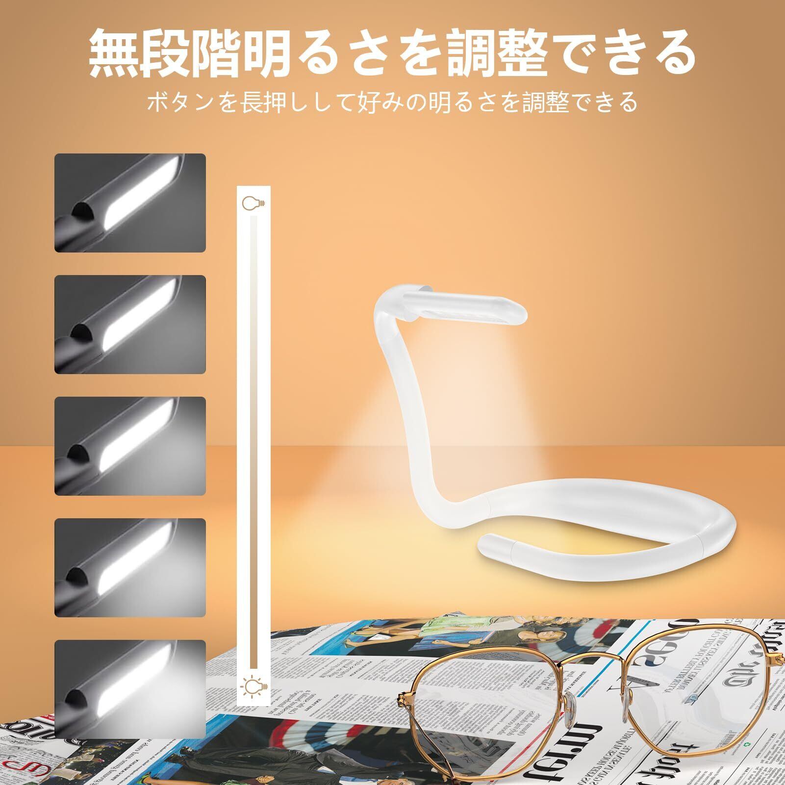 読書灯 読書ライト ブックライト 手元ライト 首掛けライト デスクスタンド LEDライト レキシブル 充電式 USB-C ポータブル 3種類光 無段階調光 角度調整可能 80時間稼働可能 大容量1800mAh 持ち運び便利 目に優しい 読書 ベッド上 夜勤 犬の散歩 日暮れの鉢植え 夜釣り キャンプ 停電 地震などの場合に大活躍