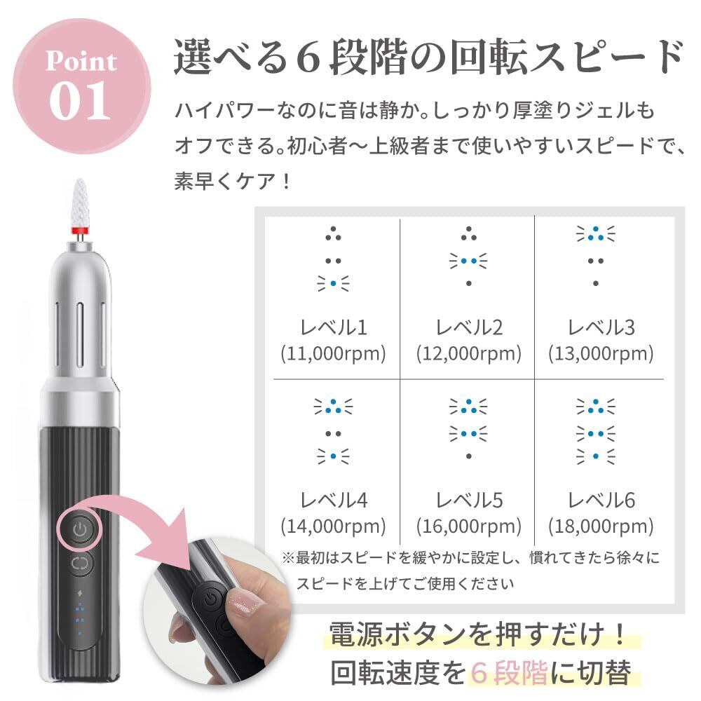 【現役ネイリスト監修】ネイルマシン プロ用 ネイル ケア マシーン ジェルネイル セルフ オフ マシン 電動 爪やすり コードレス USB充電 甘皮処理 メーカー1年 (ブラック)