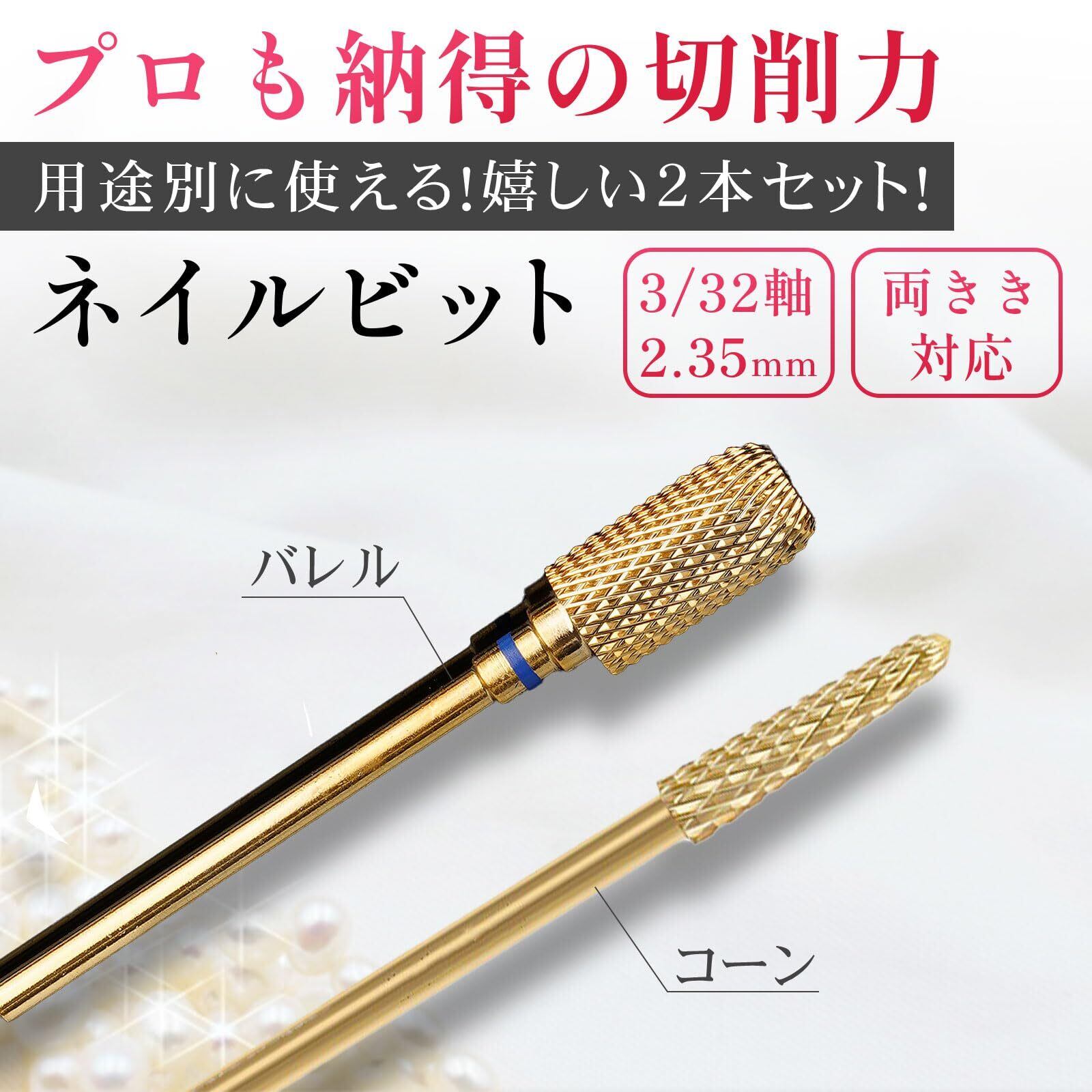 【ネイルビット2個】2.35mm、3/32軸径で多くののネイルマシンに対応。両利き対応で向きを気にせず、使用可能です。