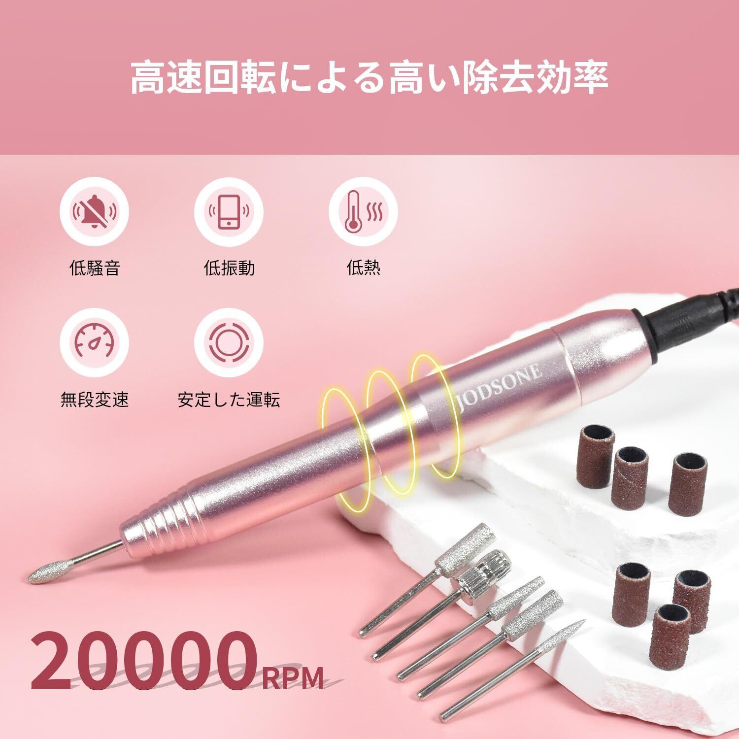 低振動、低騒音: JODSONEネイルドリルは良質の材料で作られ、高速放熱、低騒音、交換ドリルの交換が簡単です。