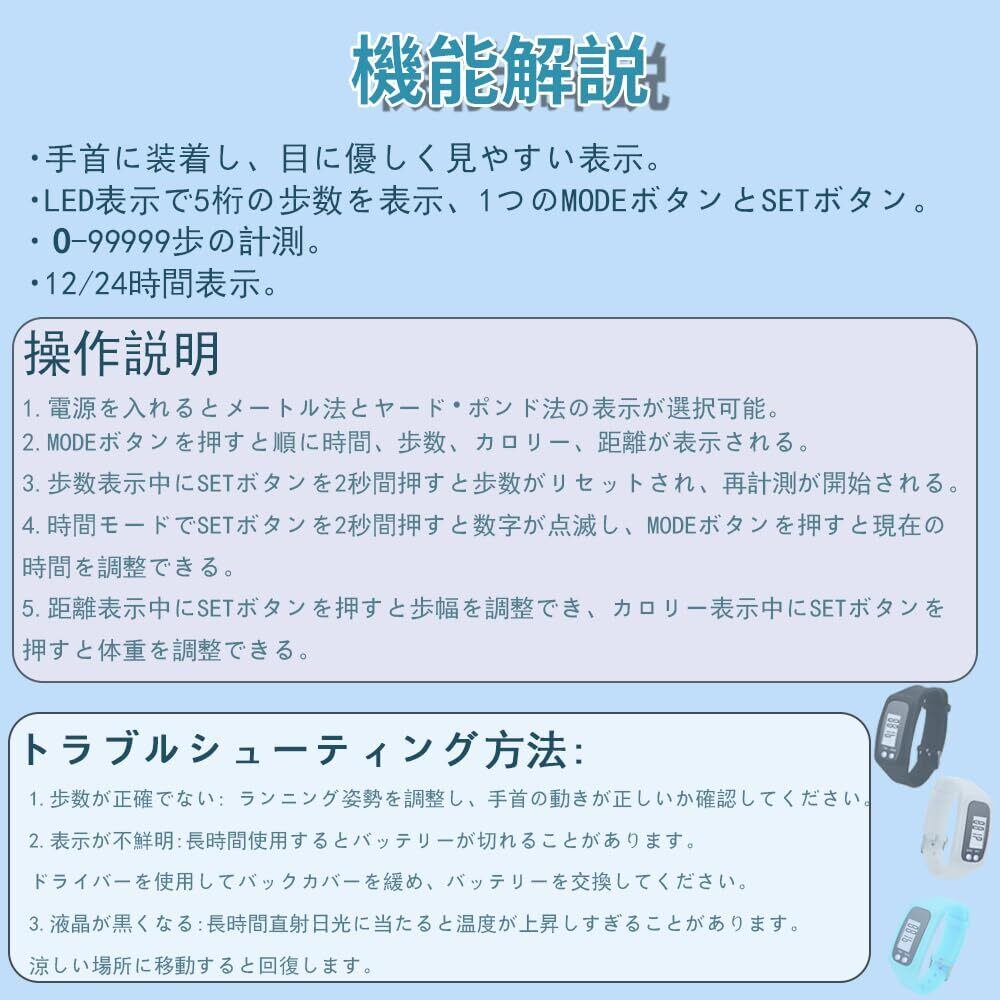 この腕時計型歩数計は、スポーツウォッチと歩数計の機能を組み合わせた製品です。高品質なABS素材を使用し、サイズは25×1.9センチメートルです。男性、女性、子供、高齢者を問わず、誰でも簡単に運動データを追跡するのに役立ちます。[注意:説明書は商品ページの画像上にあり、説明に従ってパスワードを設定できない場合は、ご連絡ください。私たちはタイムリーに対応します。]