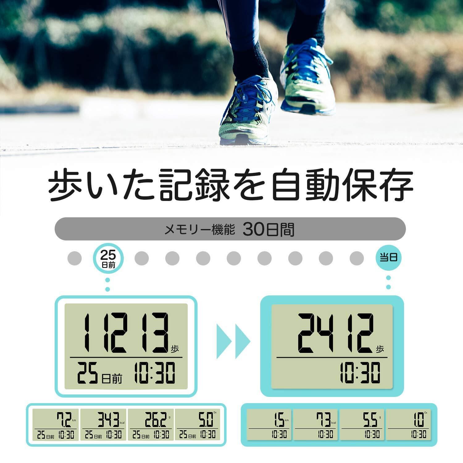 ●大きく見やすい大画面表示●バッグやポケットなど場所を選ばずカウントします●30日分のデータを記憶し、履歴を表示します●爽やかなスポーティーカラーの歩数計●便利なクリップストラップ付