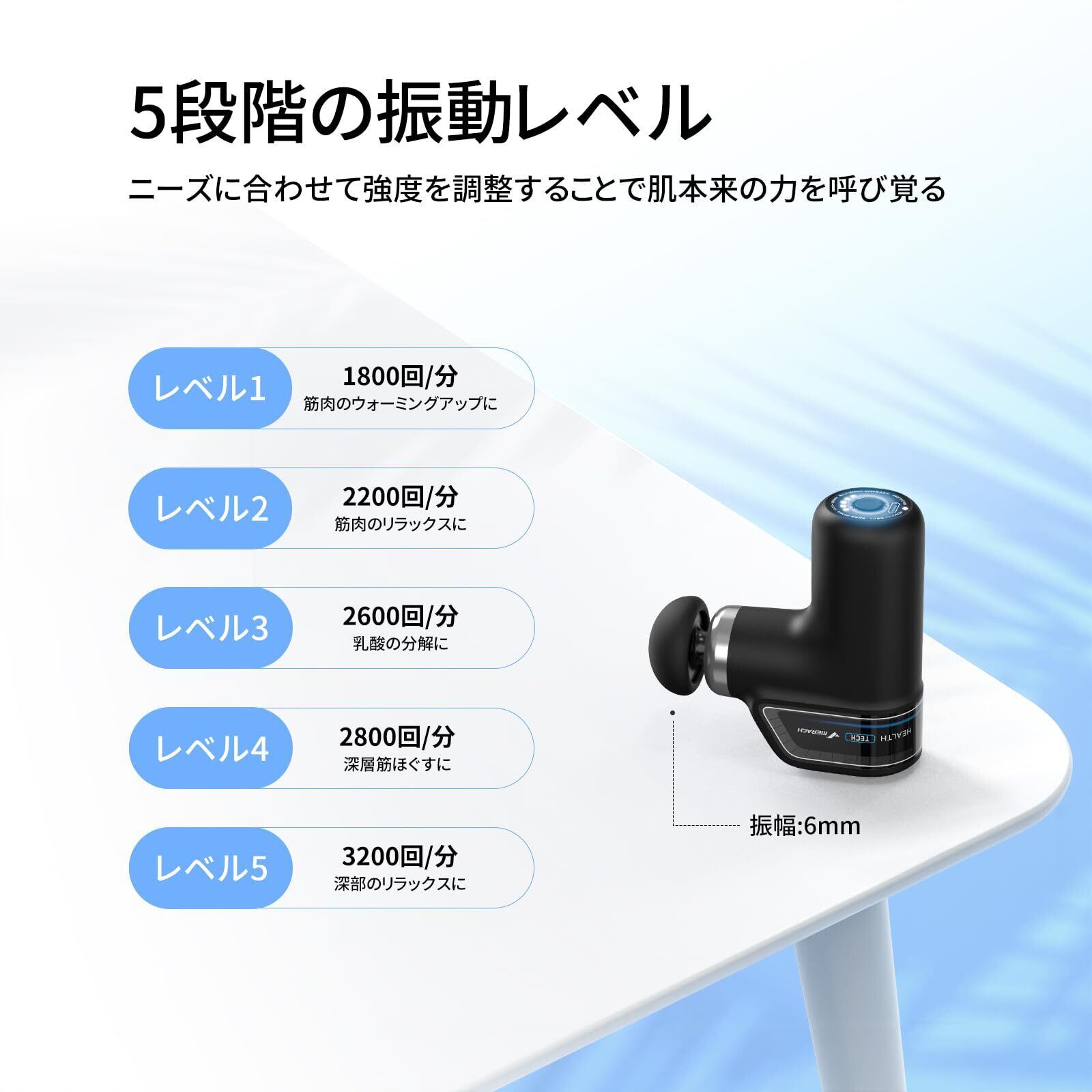 MERACH (メリック) ミニ 筋膜リリースガン 228g超軽量 MINI ハンディガン 筋膜リリース リリースガン 5段階強力振動 最速3200回/分 3つのシリコンヘッド付属 Type-C充電式 静音 携帯便利 日本語取扱説明書付き きんまくリリース 電動ガン 一年メーカー ブラック