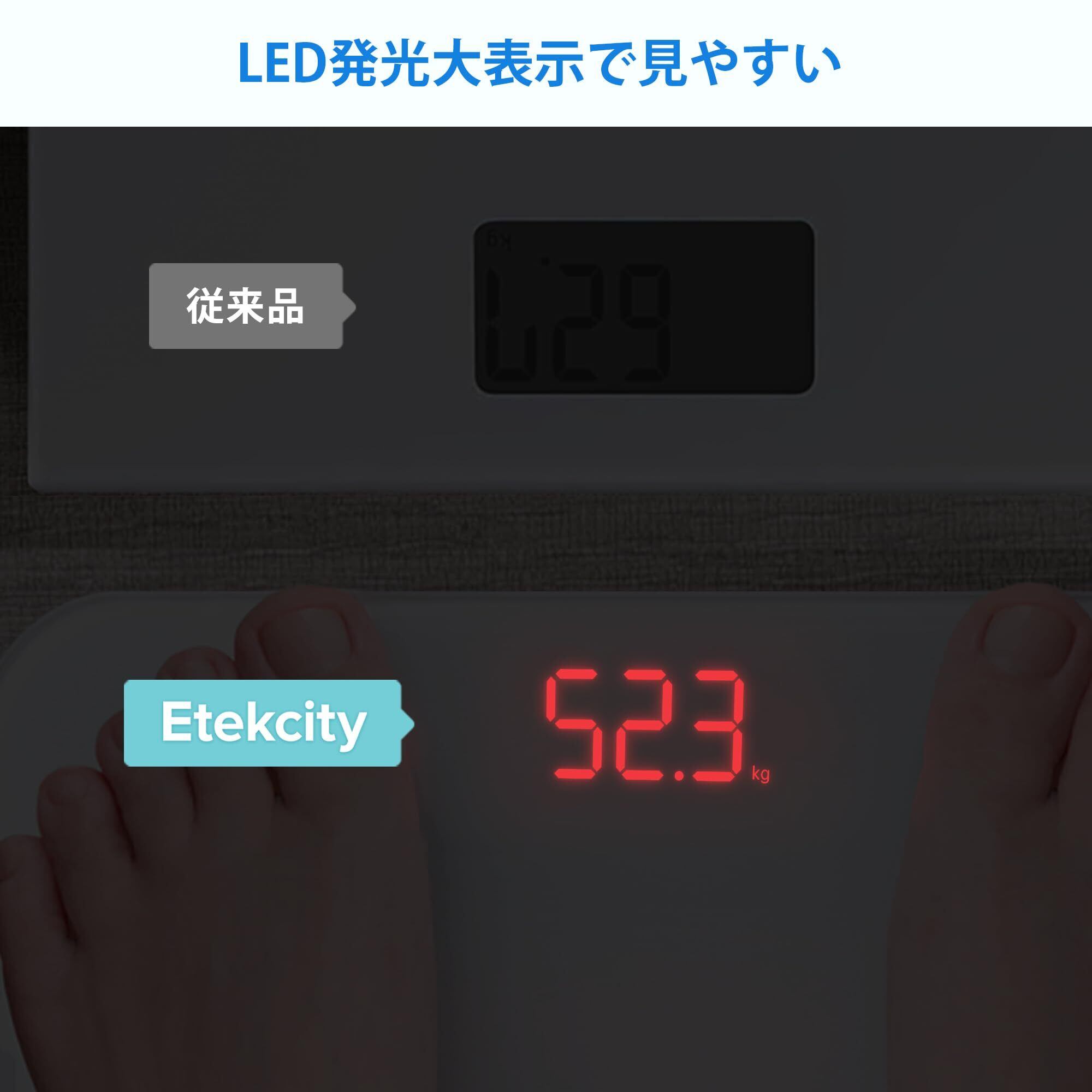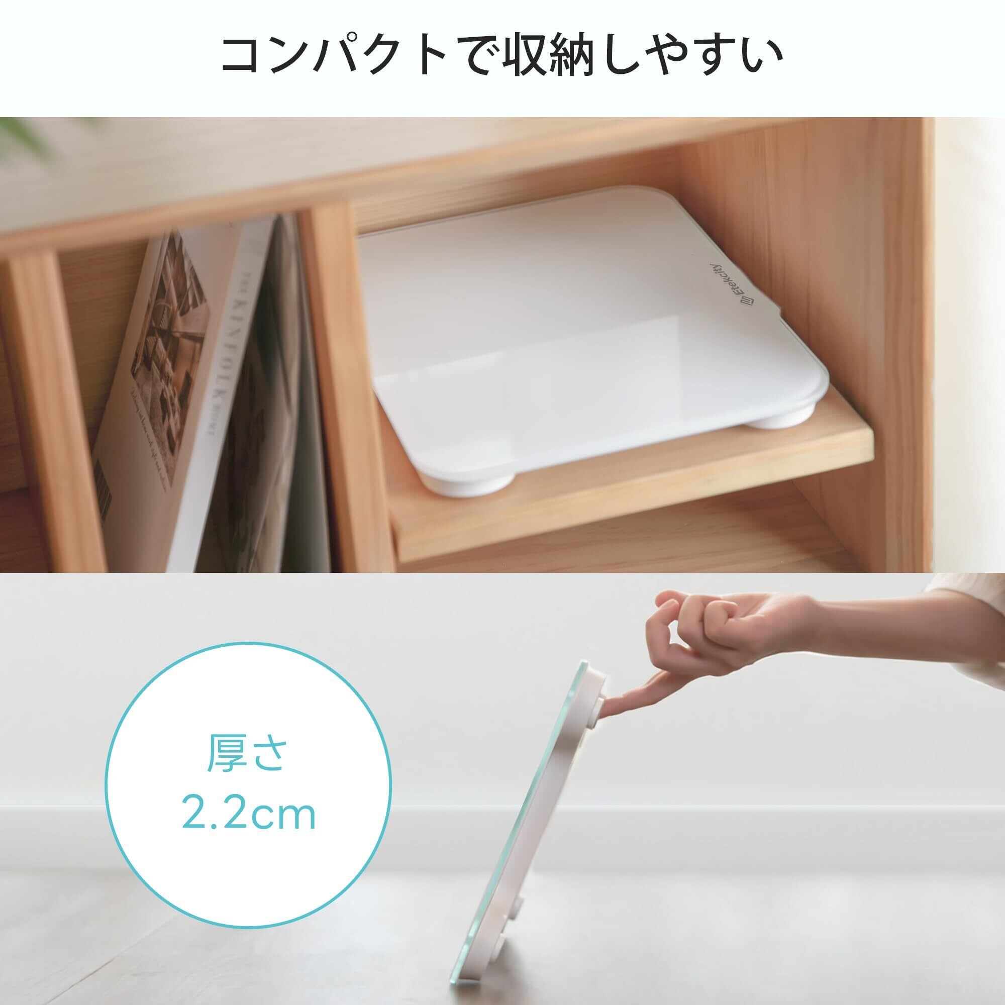 Etekcity 体重計 ヘルスメーター たいじゅうけい電源自動ON/OFF 小型 強化ガラス コンパクト 電池付属 EB4010J ホワイト