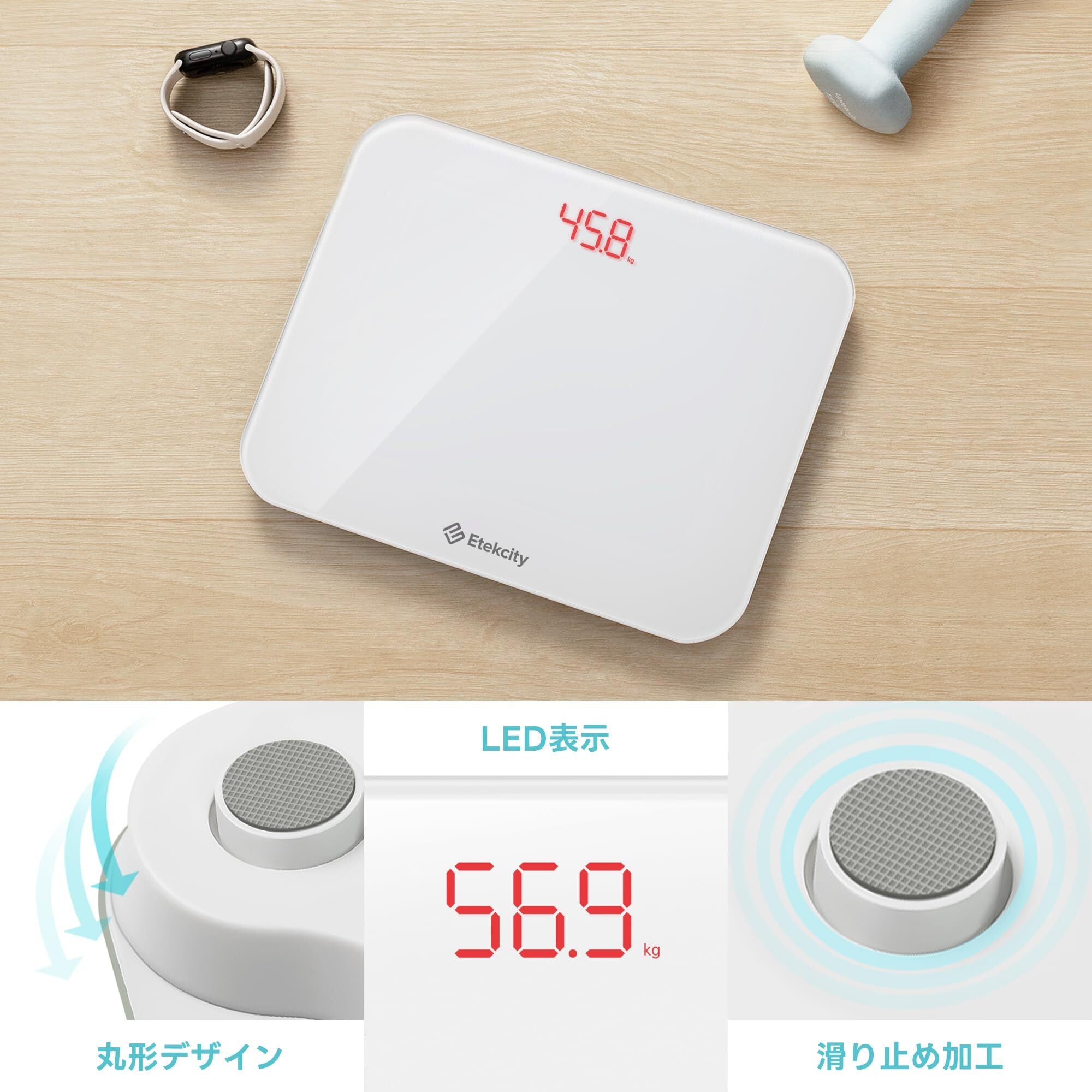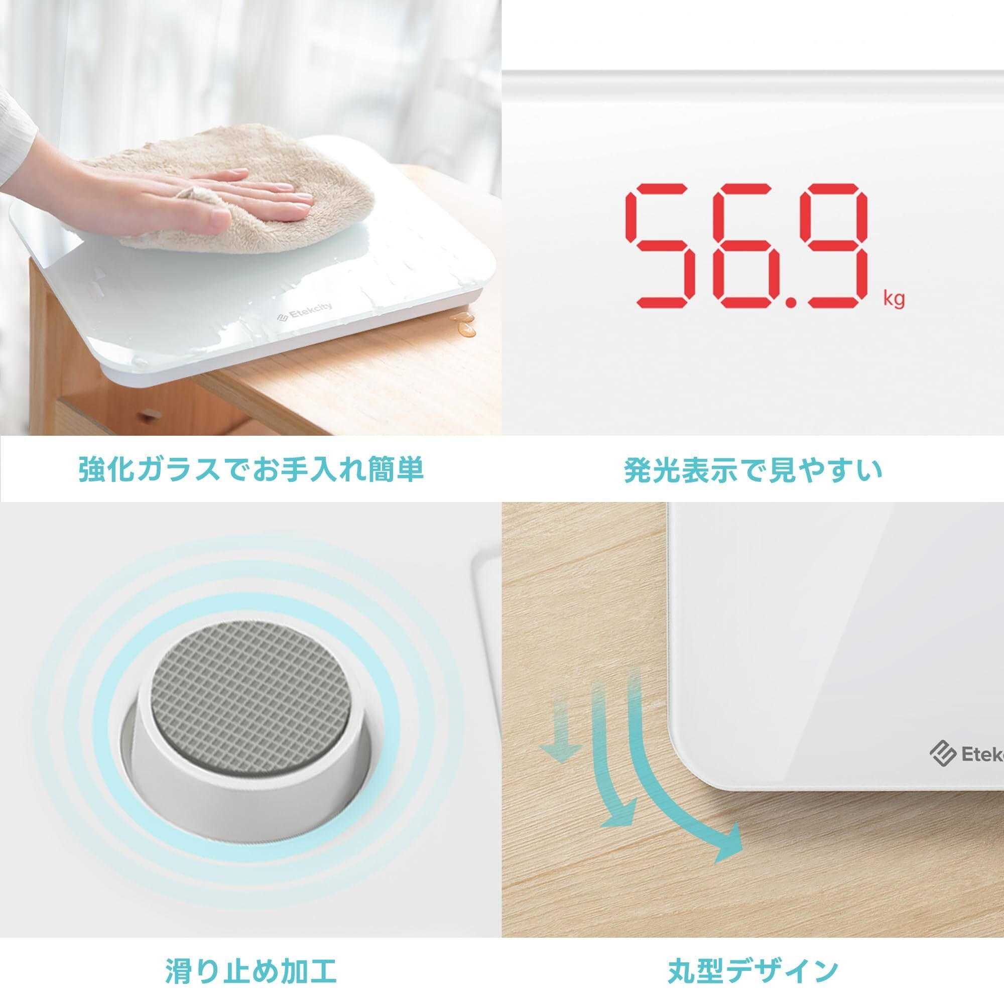 特徴 大型ディスプレイ, 滑り止めプラットフォーム, 自動電源オン・オフ