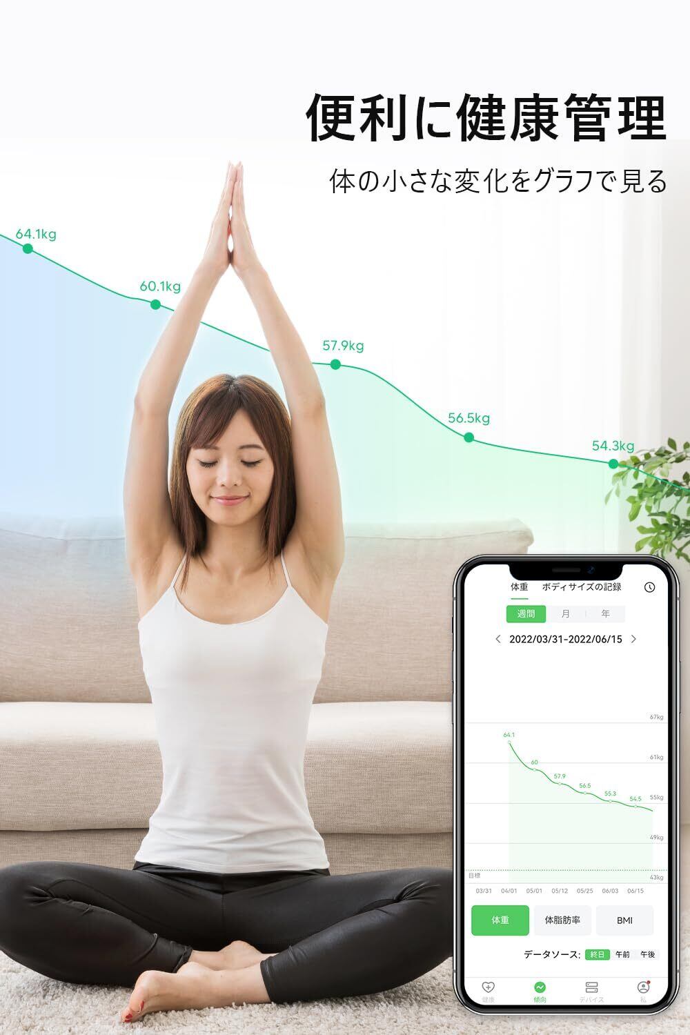 【14項目測定・体サイズの記録】体重計はアプリでみえるだけじゃなく、Applehealth/GoogleFit/Fitbit/あすけんと連携可、アプリでユーザー登録すると、14項目指標が見えます。体型をキープするに役立つデータを一気にわかります。筋トレする方には、ボディサイズの記録ができます【簡単に健康管理】アプリは友達追加と飲食記録など測定結果をシェアできます。